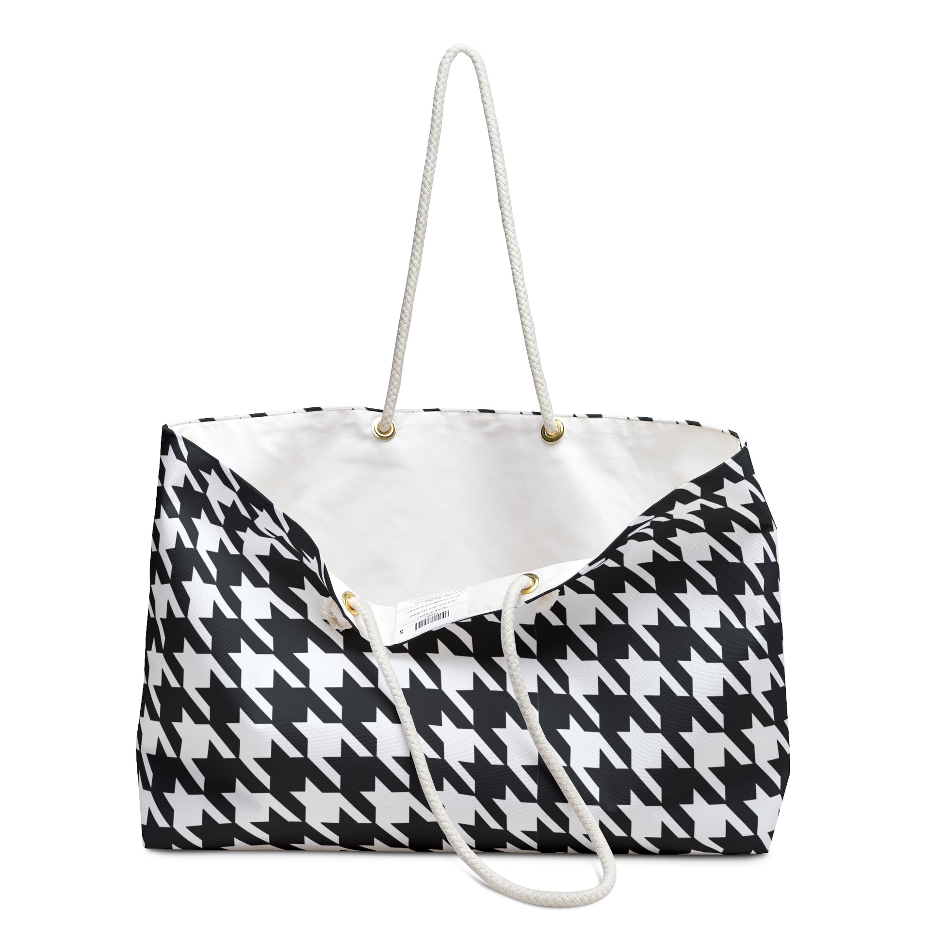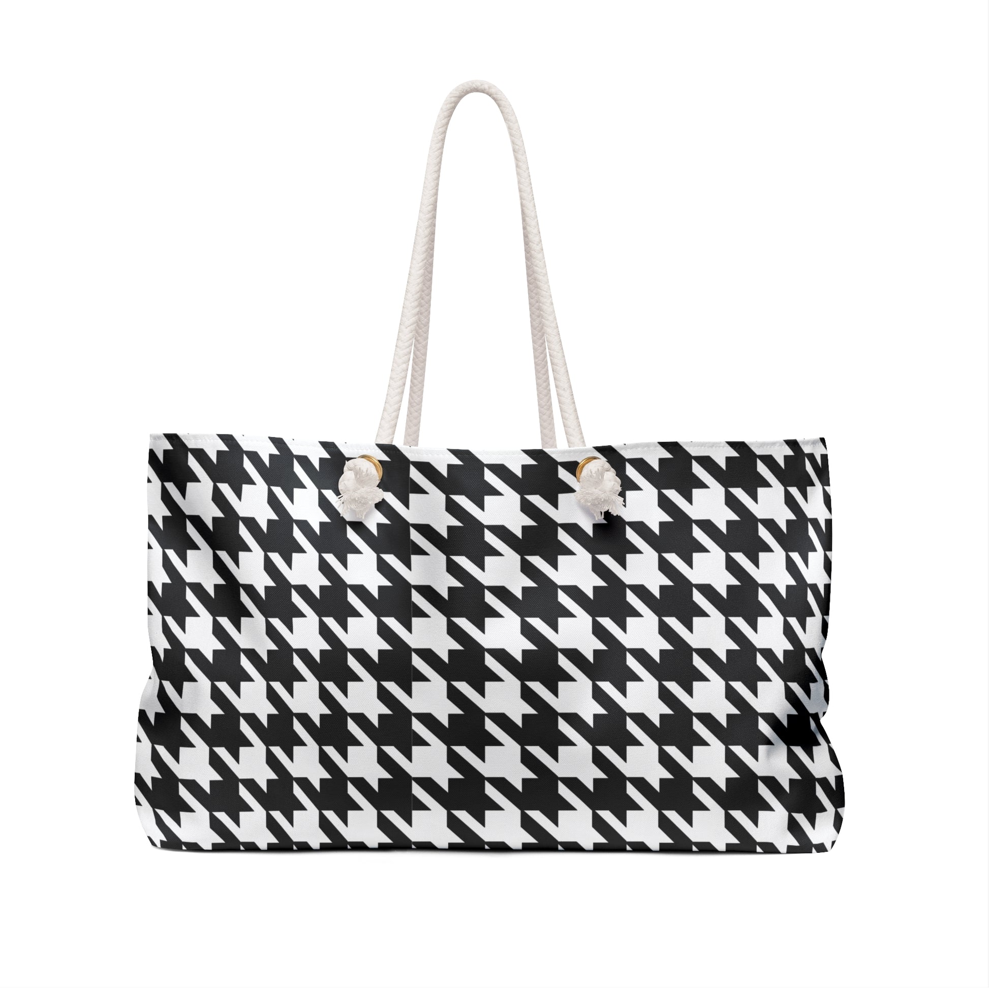 Black White Houndstooth Weekender Bag | Travel Tote, Rope Handle