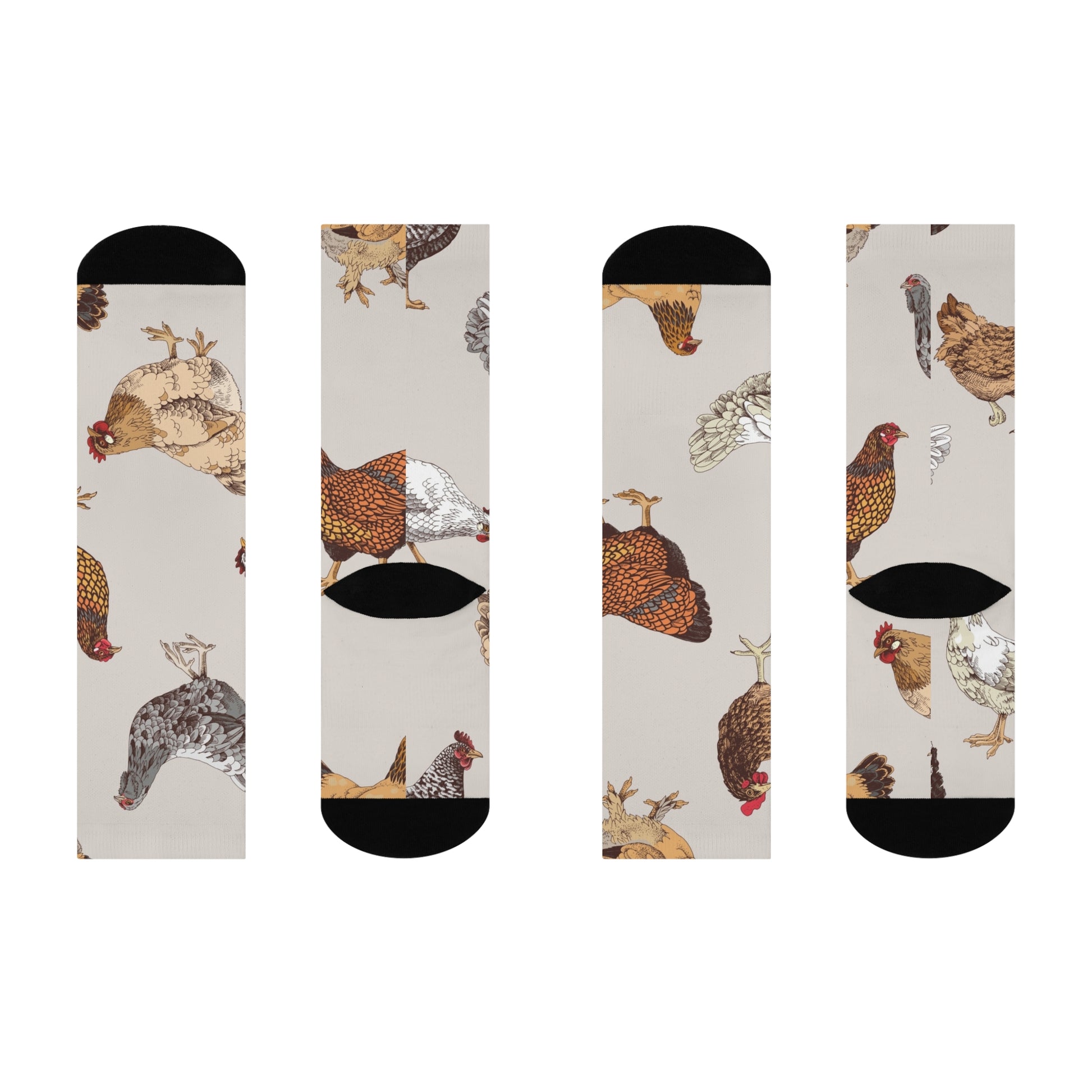 Chicken Pattern Crew Socks — Cushioned Farm Hen Novelty Socks