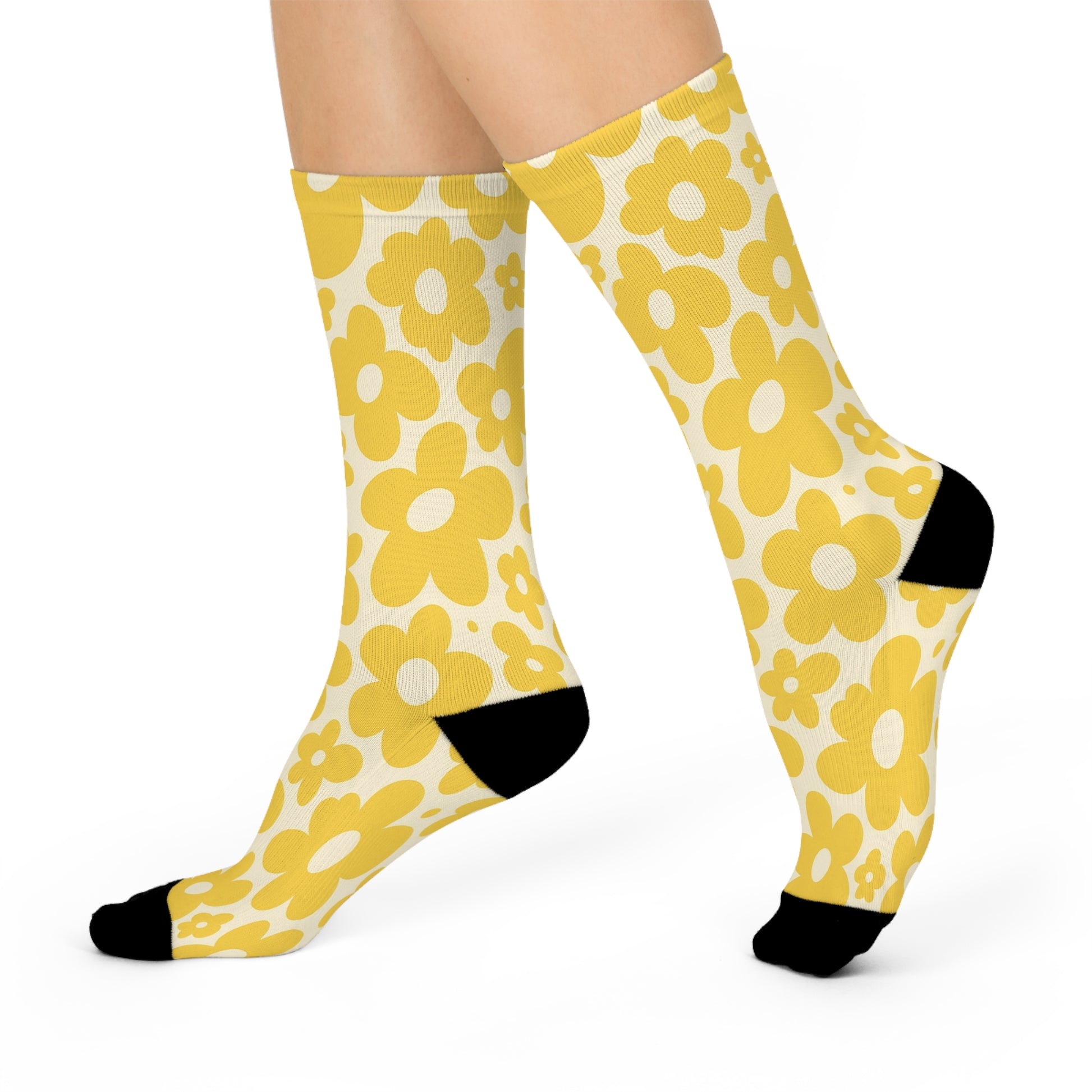 Cheerful Yellow Cushioned Crew Socks - Fun Gift for Friends, Colorful Casual Wear, Cozy Socks, Unique Statement Piece, Perfect for Celebrations!