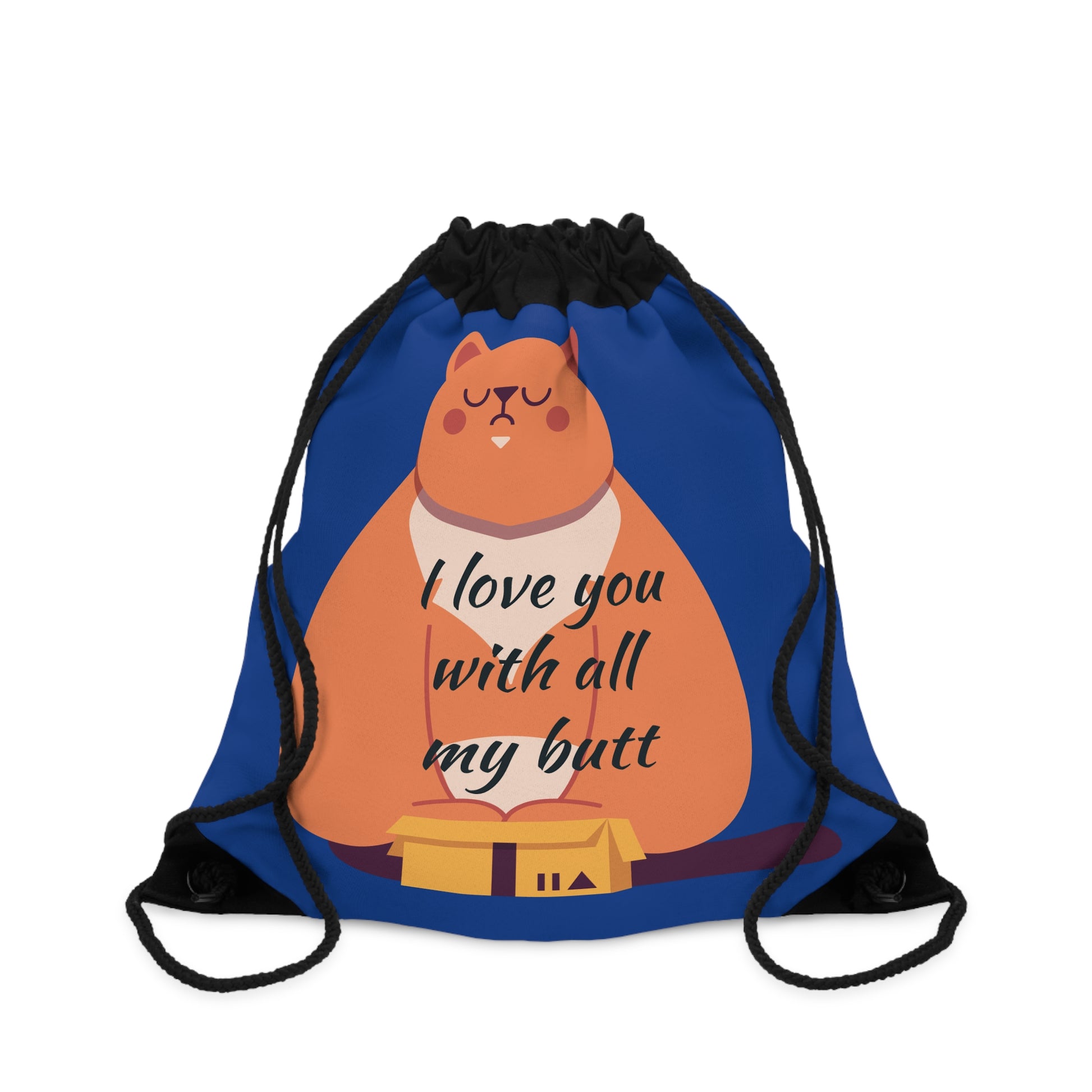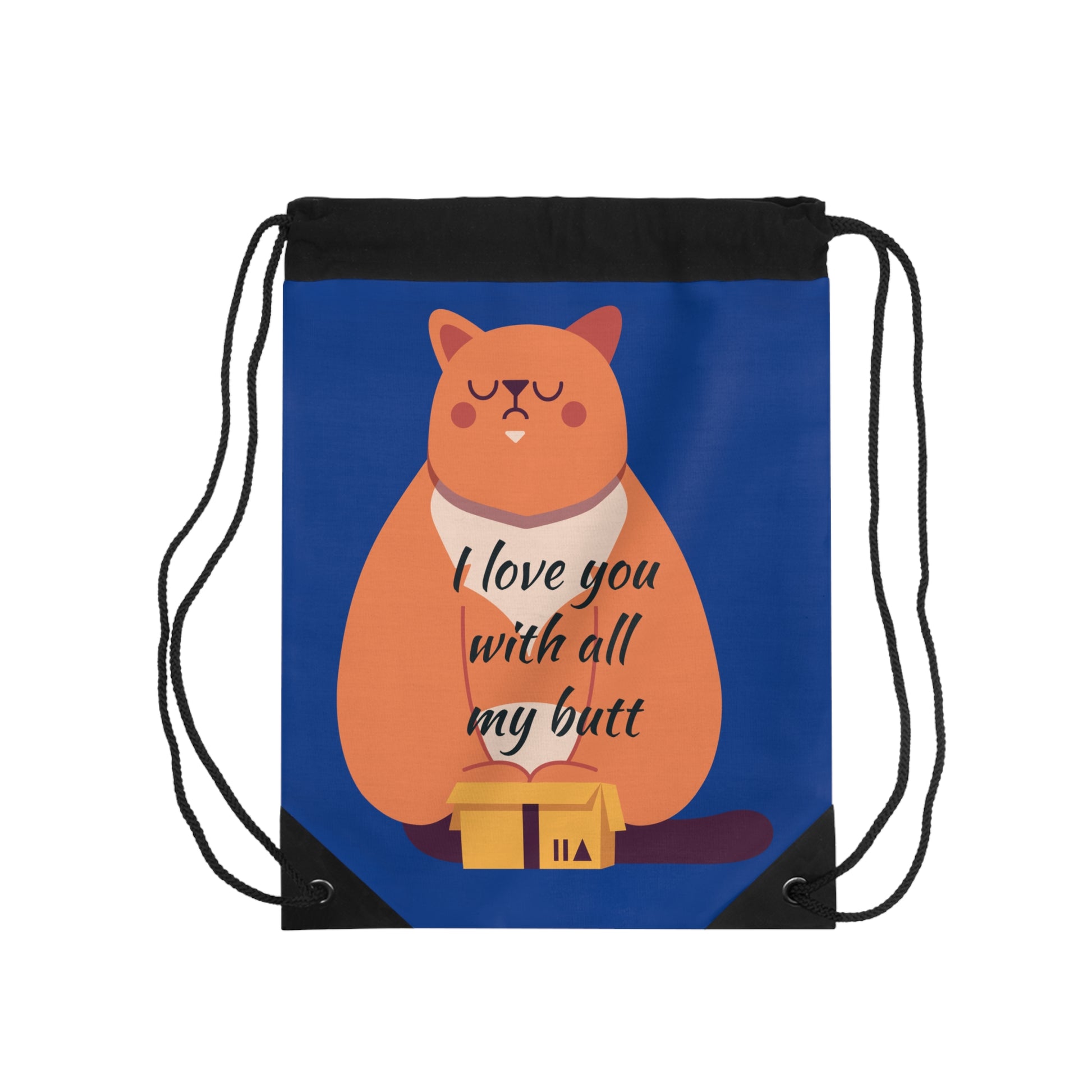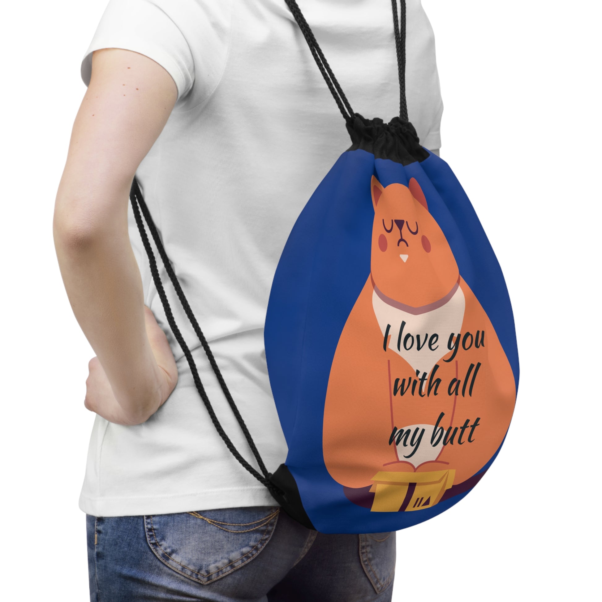 Cute Cat Drawstring Bag - "I Love You with All My Butt" - Funny Gifts for Cat Lovers, Gym Bag, Tote, Personalized Bag, Eco-Friendly