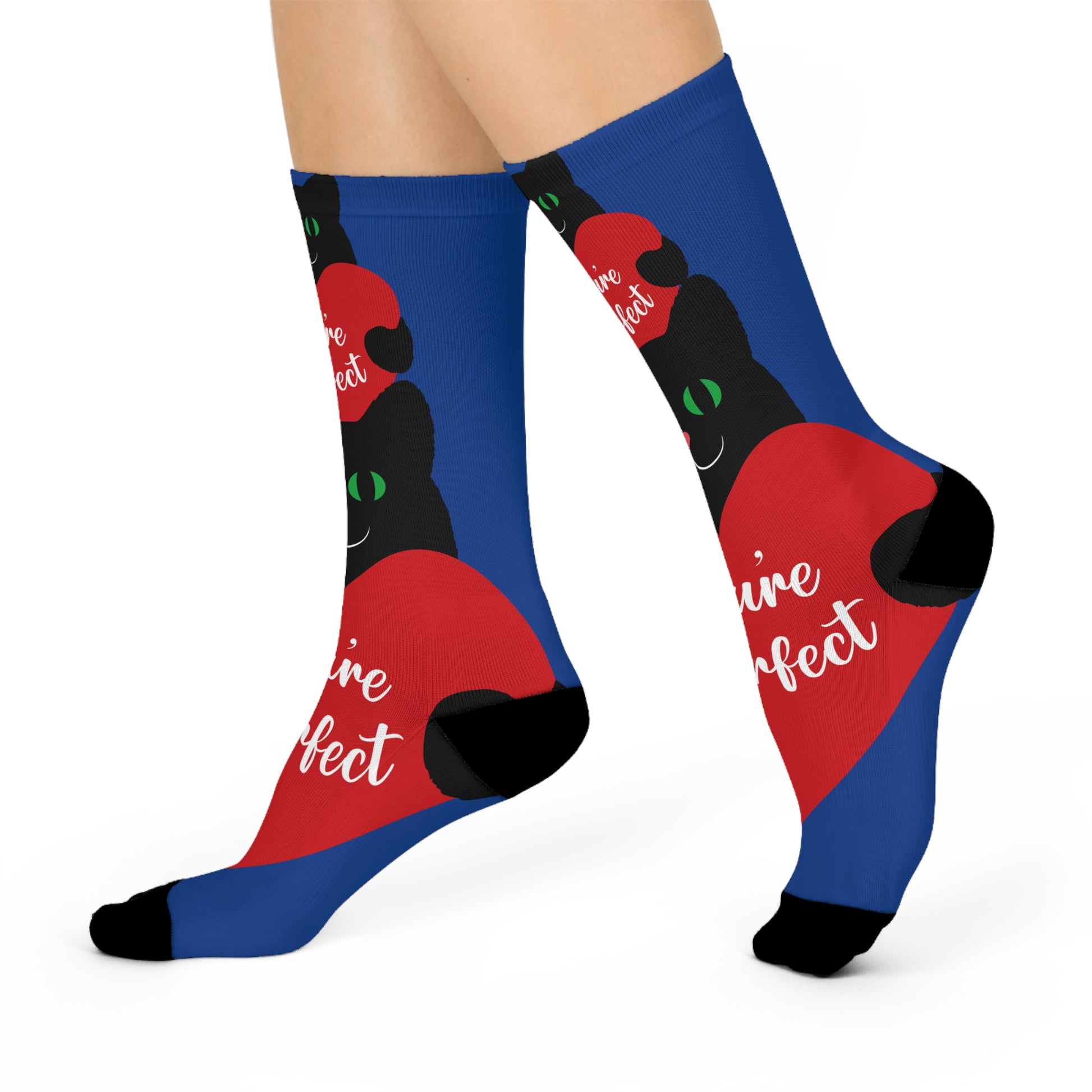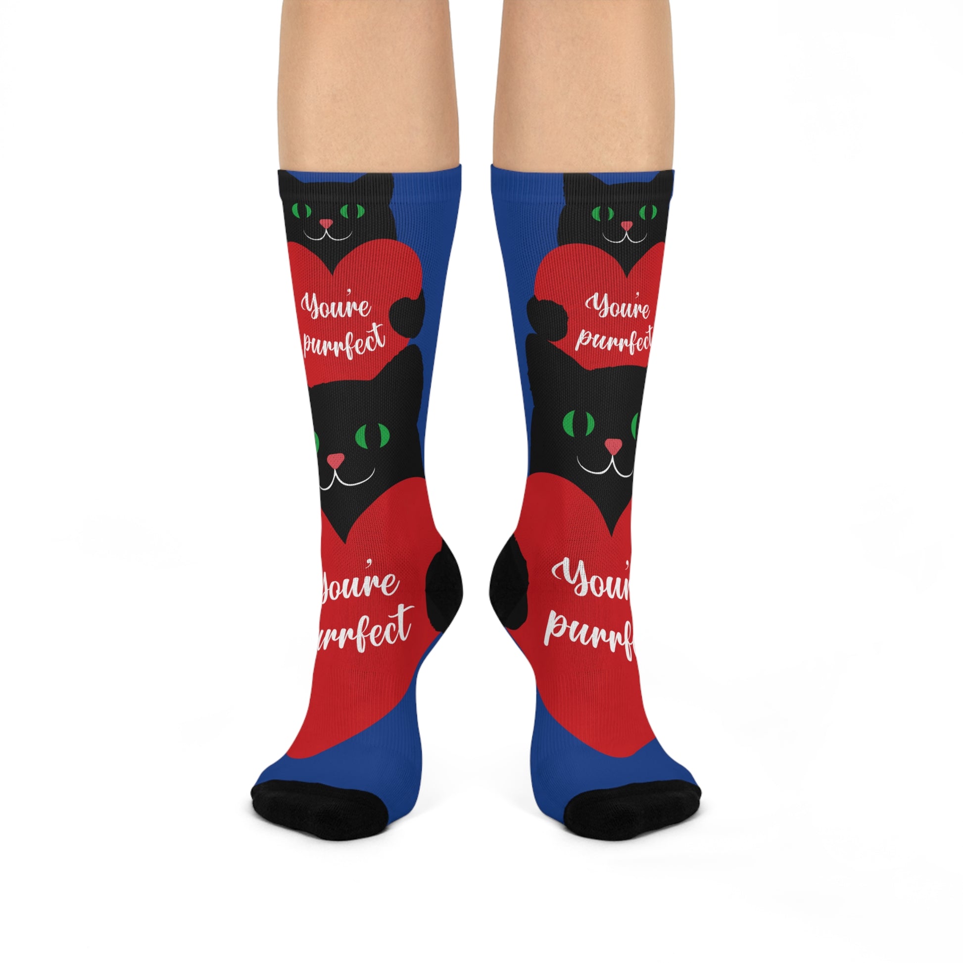 Cute Cat Themed Socks, You're Purrfect Gift, Cozy Crew Socks for Cat Lovers, Valentine's Day Socks, Fun Ankle Socks