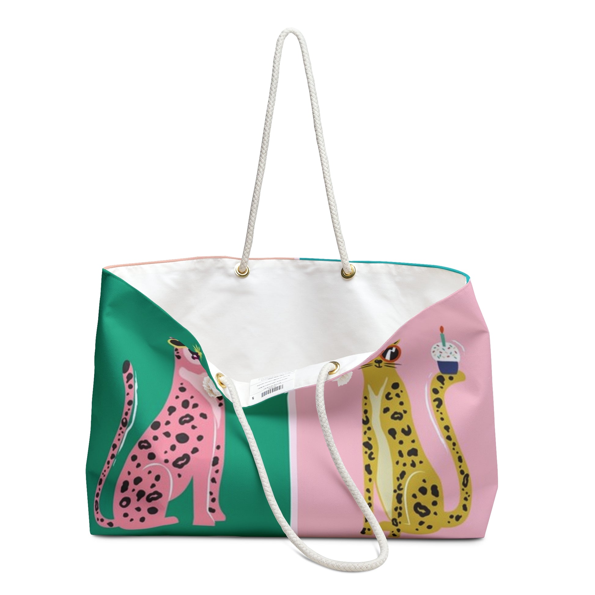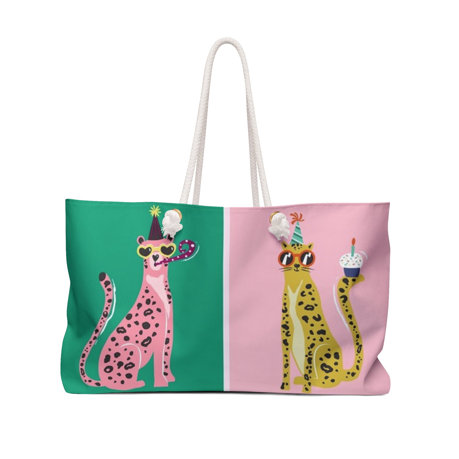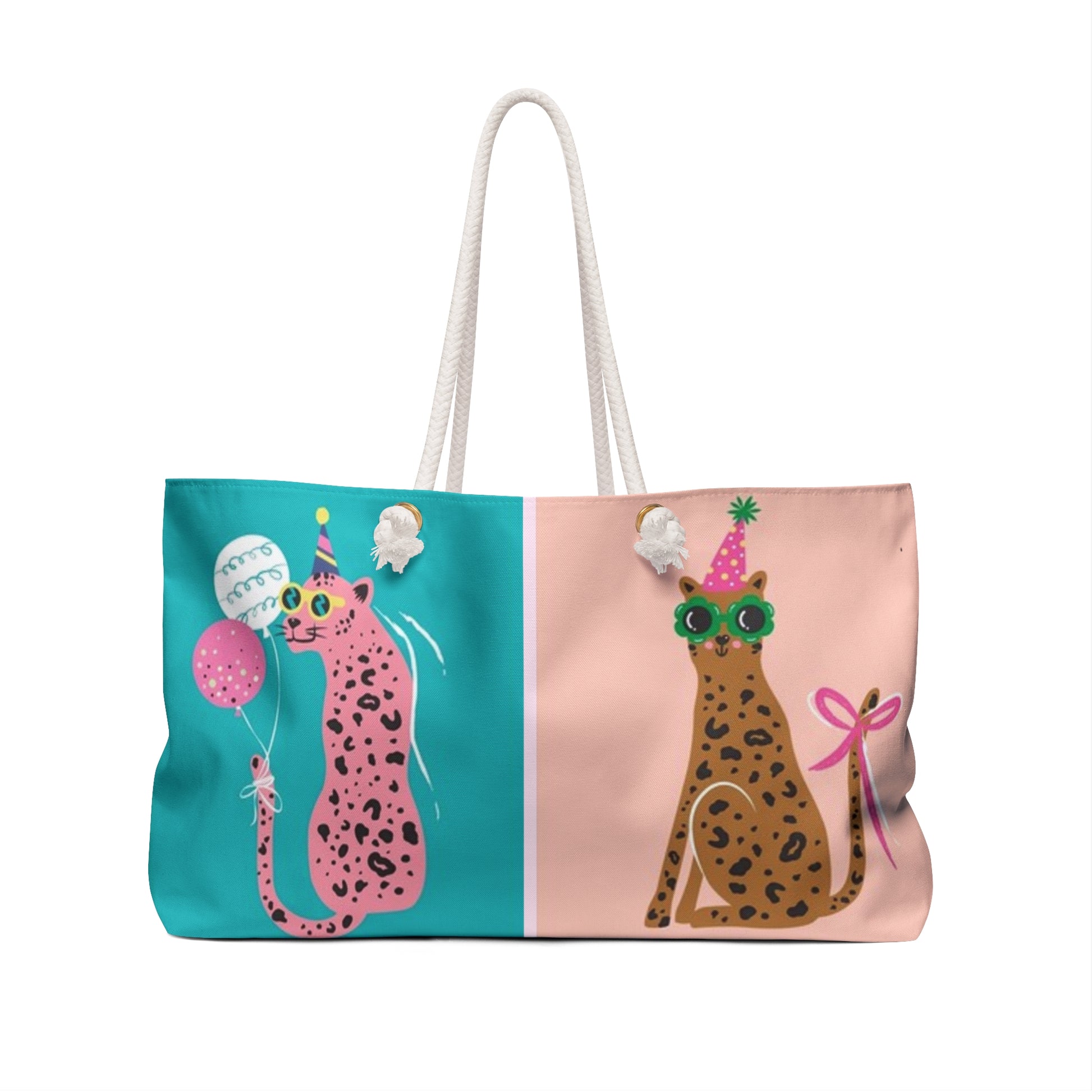 Introducing a vibrant and playful Weekender Bag that brings a joyful vibe to every adventure! Featuring whimsical leopard designs, this spacious bag is perfect for weekend getaways, gym sessions, or as a stylish carry-on for your travels. The cheerful colors and fun characters make it a great gift for animal lovers and those who appreciate a touch of whimsy in their everyday life. Ideal for birthdays, holidays, or celebratory events, this bag adds joy to any occasion. Whether you're off to a beach party or a friend's house, this Weekender Bag effortlessly combines functionality and flair!