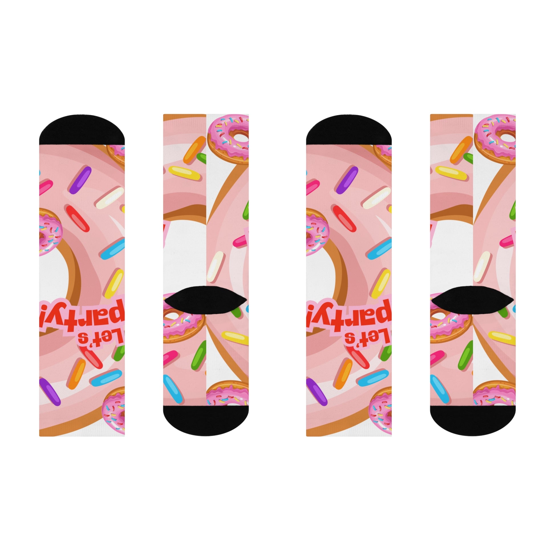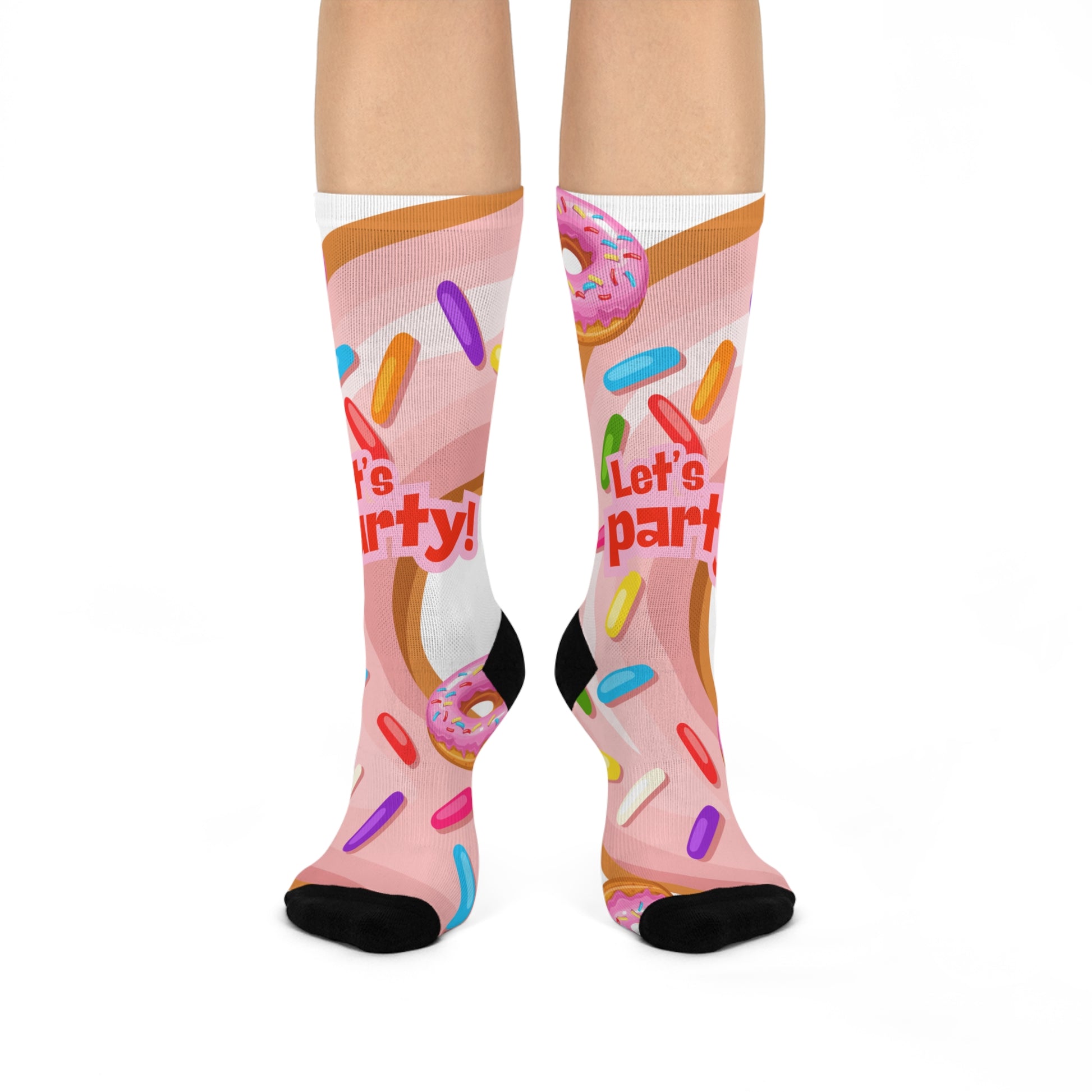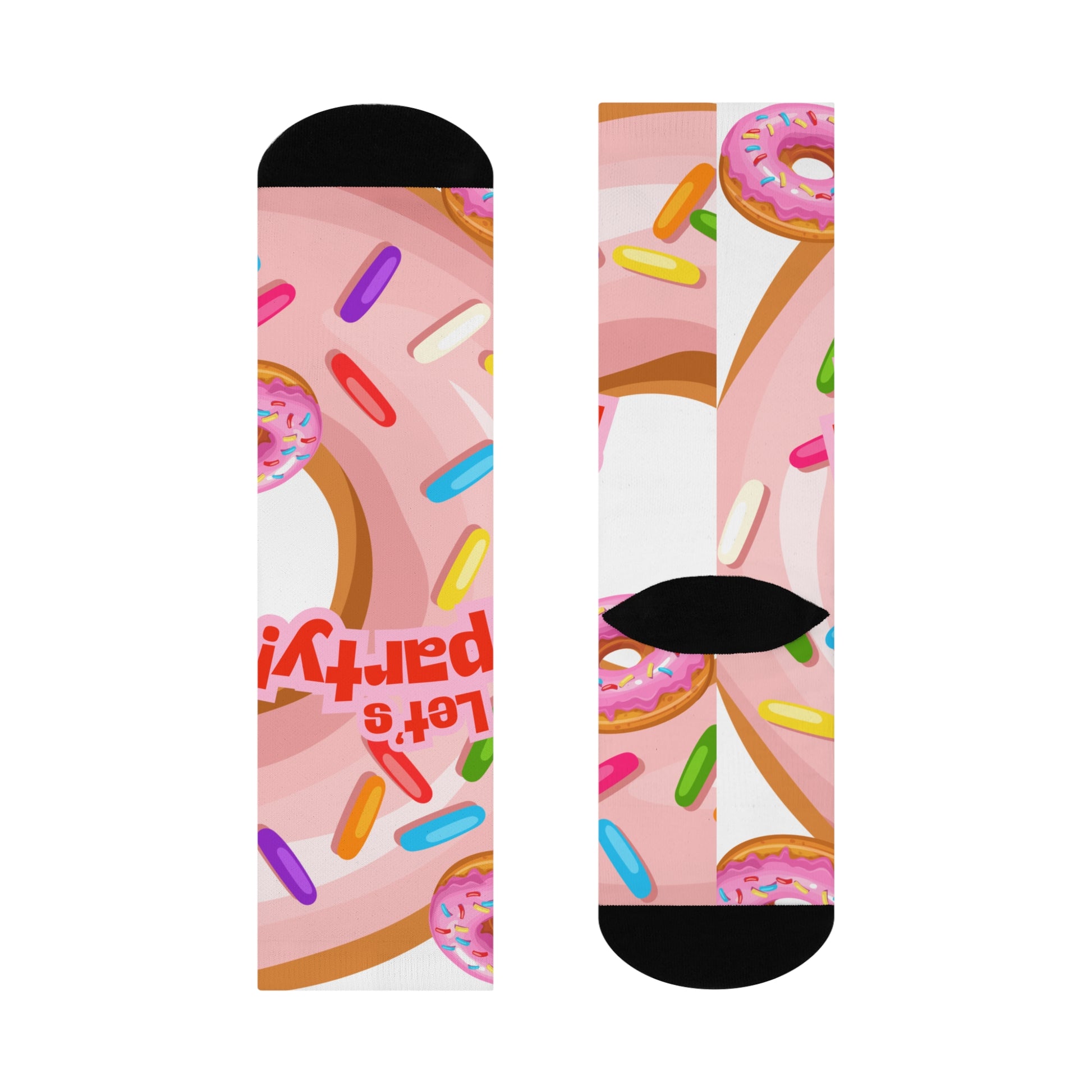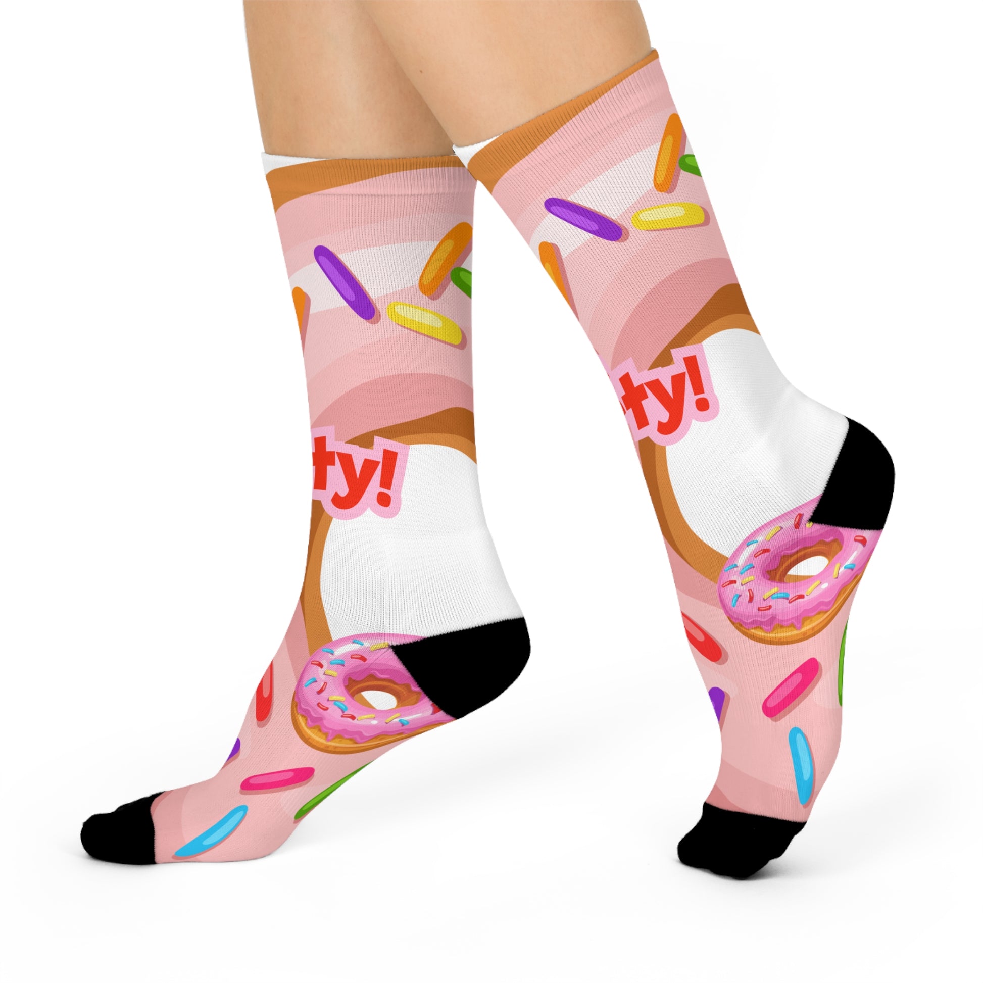 Fun Party Socks, Cute Cushioned Crew Socks, Donut-Themed Socks, Gift for Foodies, Birthday Socks, Colorful Casual Socks