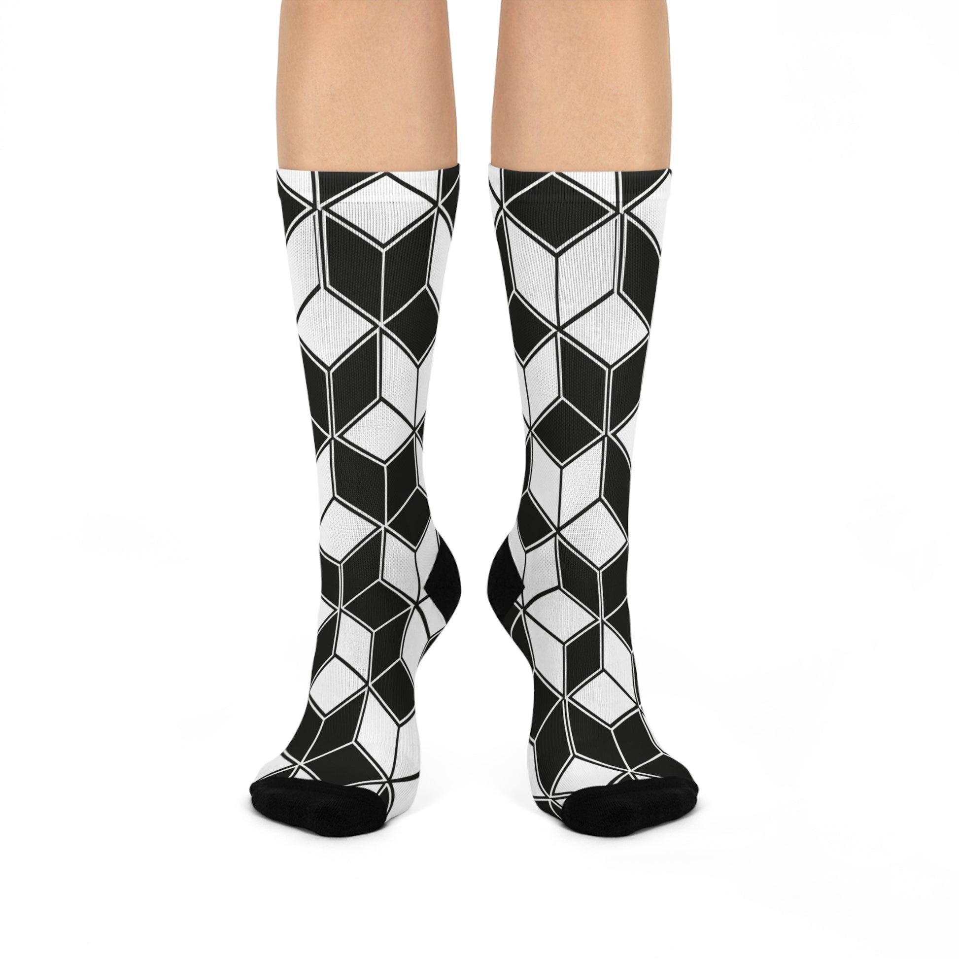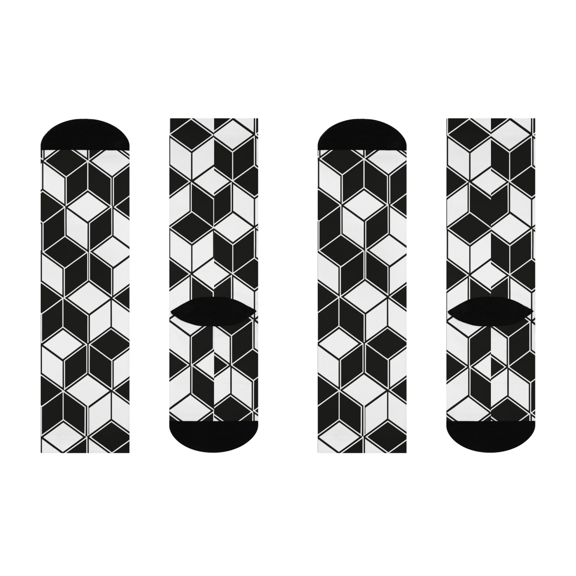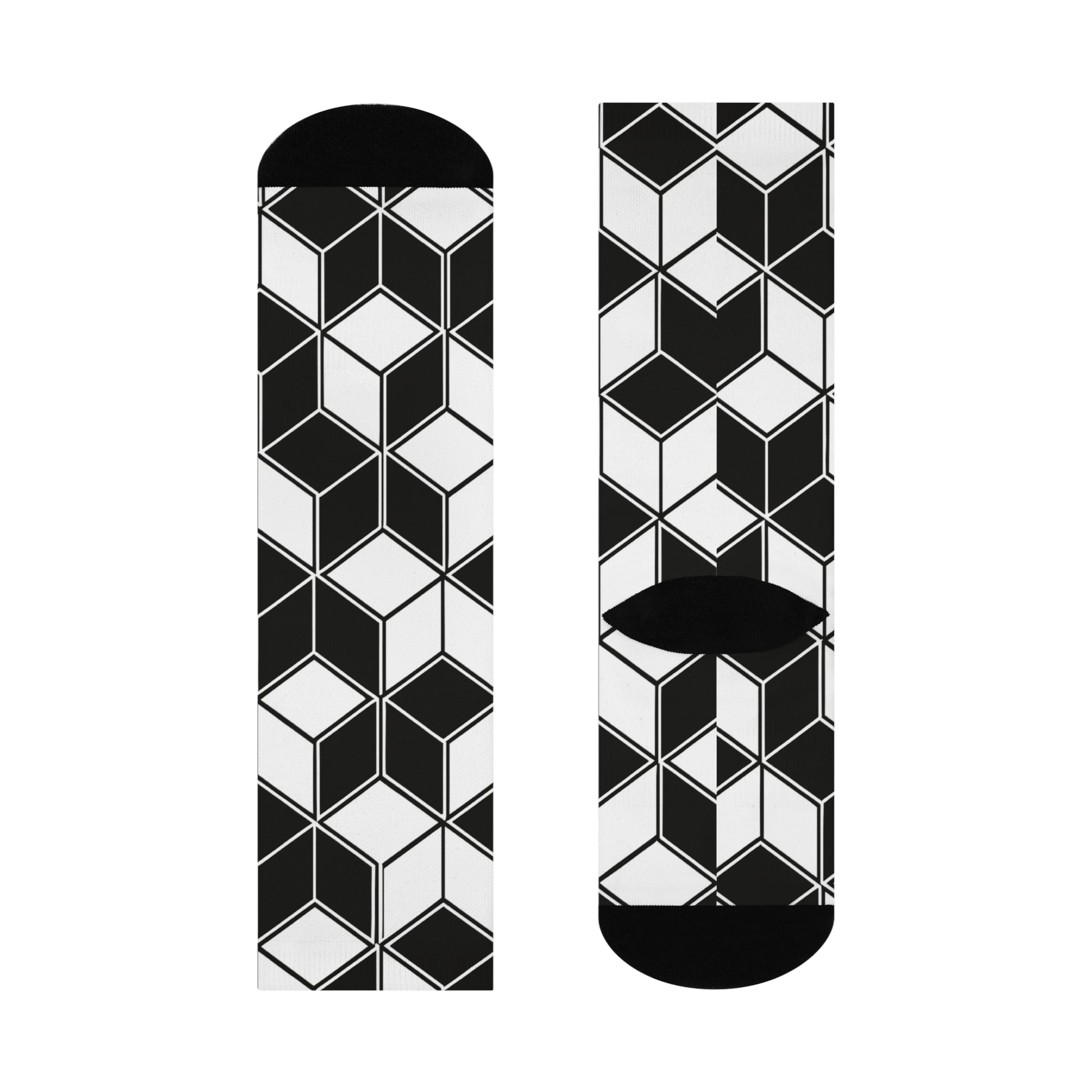 Geometric Pattern Cushioned Crew Socks | Stylish Fashion Socks, Gift for Her, Comfortable Socks, Cozy Home Wear, Unique Accessories