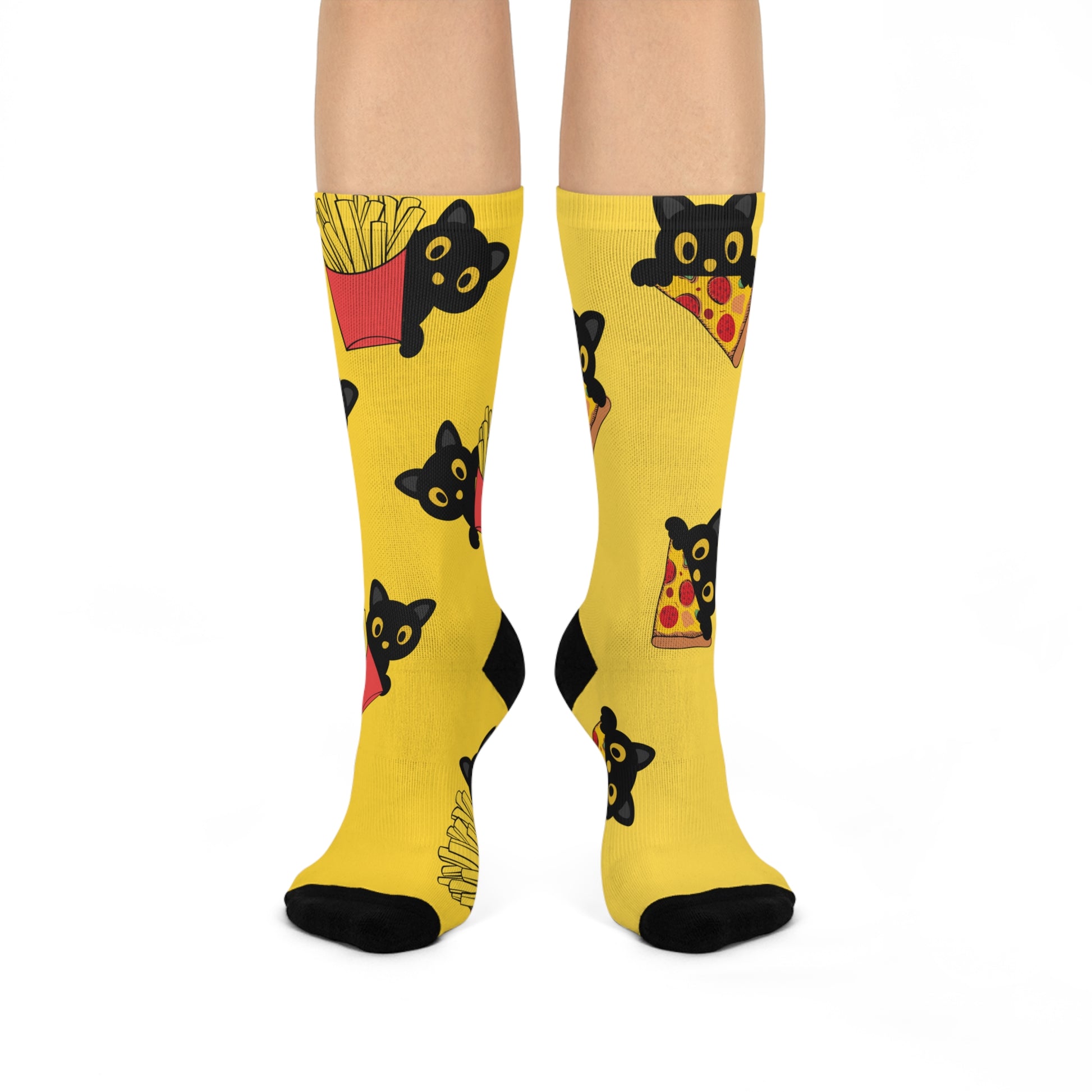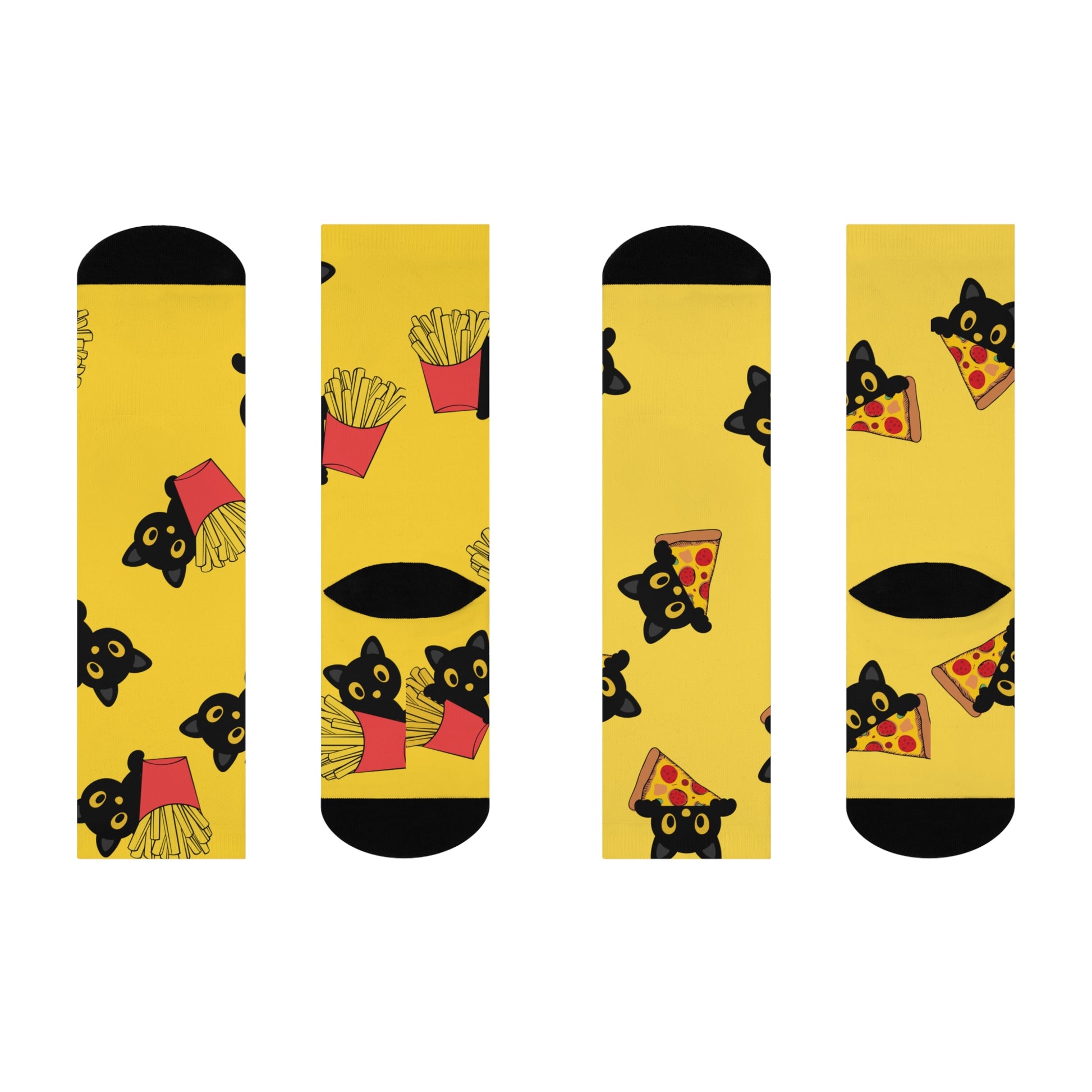 Step into comfort and style with these vibrant crew socks, designed to add a playful touch to your wardrobe. Featuring an all-over print that showcases adorable cats enjoying their favorite snacks, these socks will bring joy to your everyday outfit. Perfect for lounging at home, adding flair to casual outings, or even dressing up for a fun occasion, they make a delightful statement piece. Ideal for cat lovers and food enthusiasts alike, these socks fit seamlessly into anyone's life's cozy moments—whether it’s a relaxed weekend at home or a quirky addition to your work-from-home attire. Great for gifts during holidays like Christmas, birthdays, or ‘just because’ treats, they are sure to bring a smile to anyone’s face!