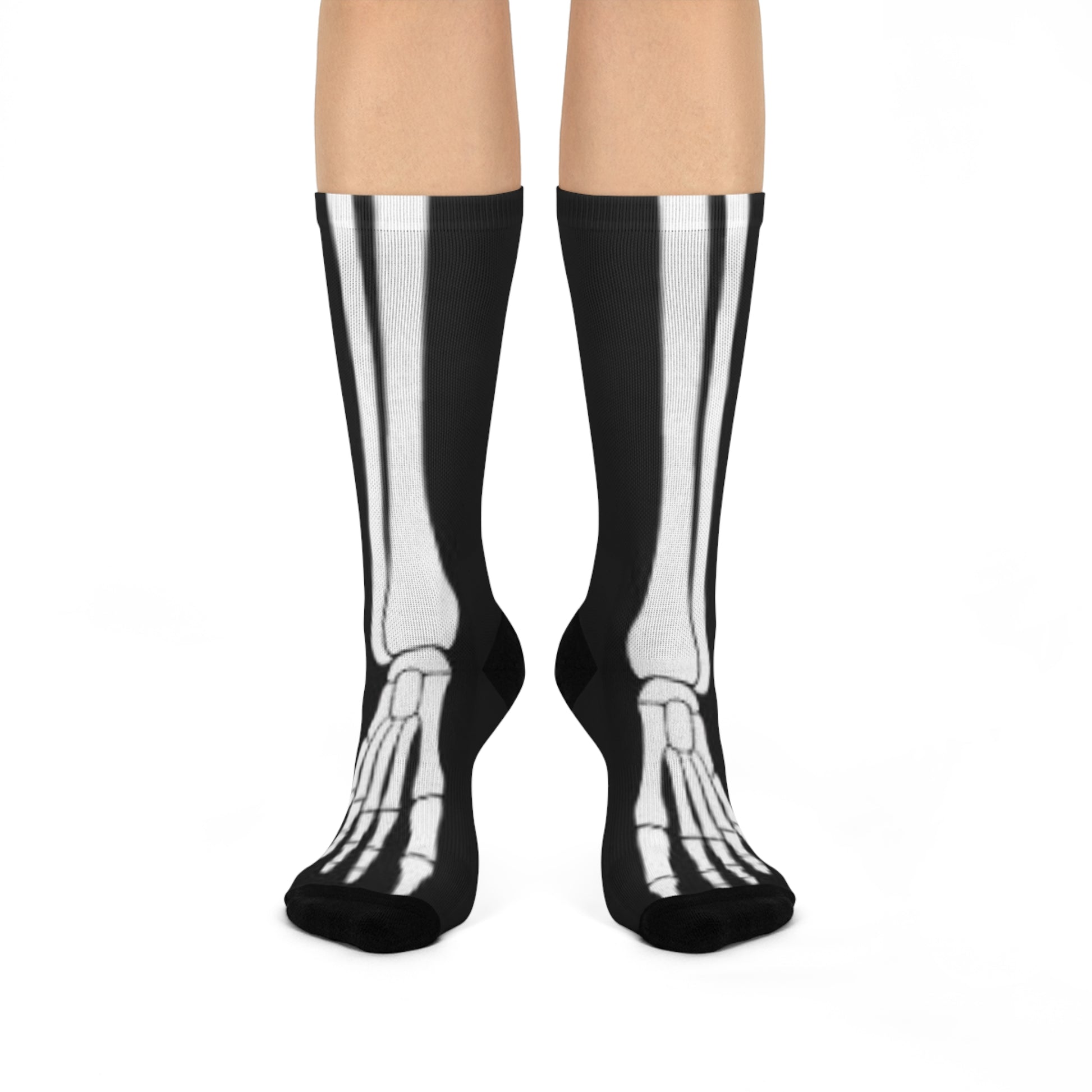 Skeleton Design Cushioned Crew Socks | Fun Gift for Halloween, Party, Friends, and Everyday Wear | Unique Bone Print Socks