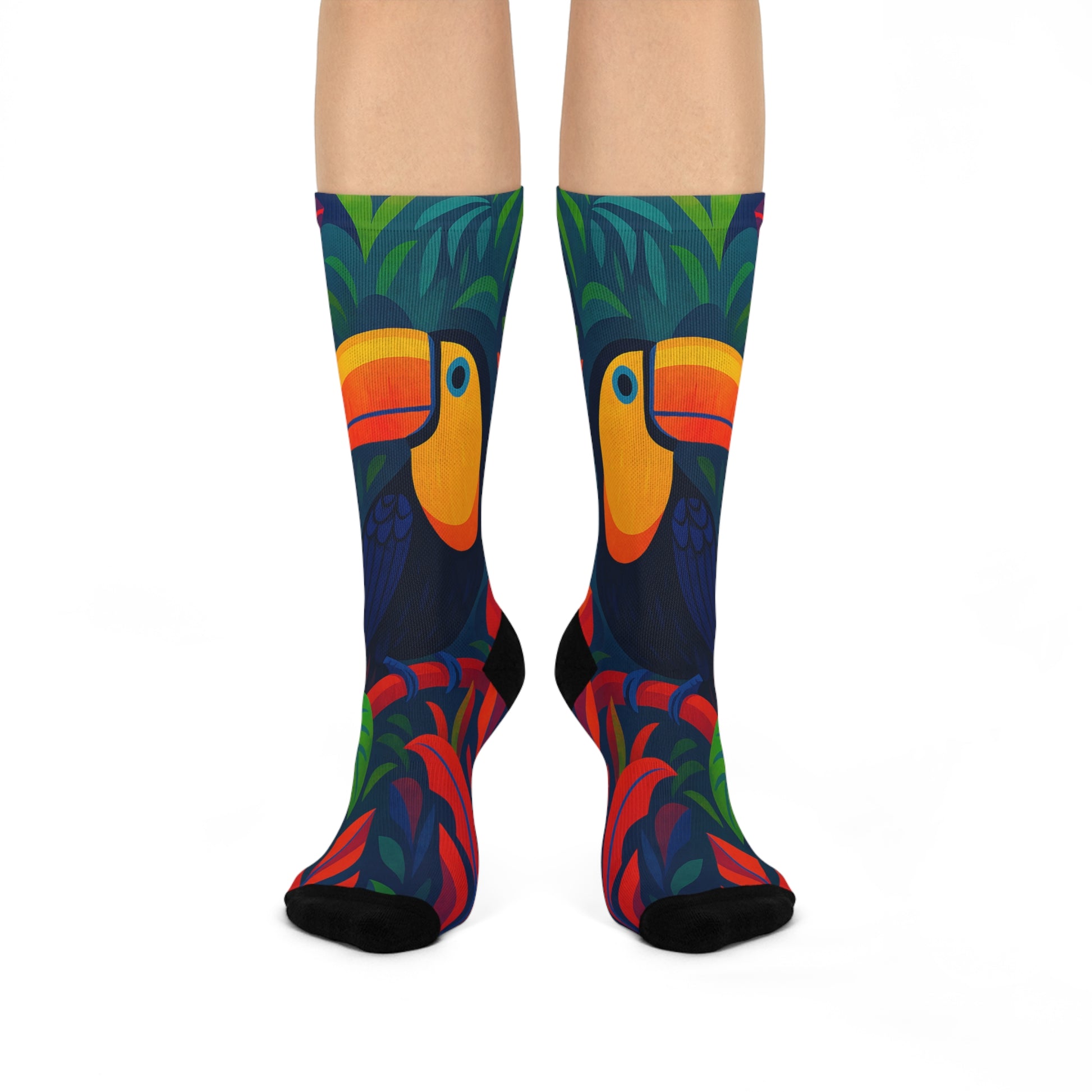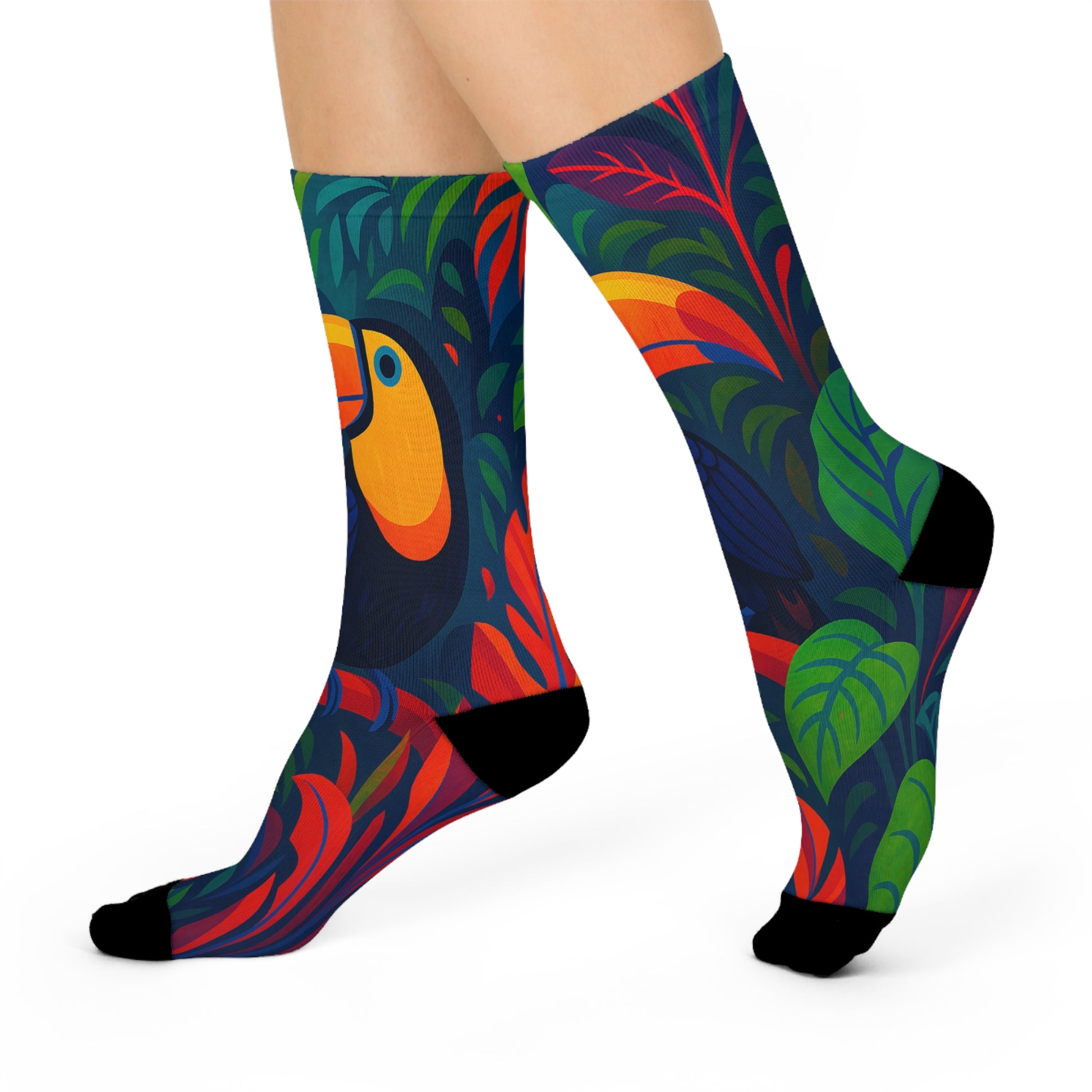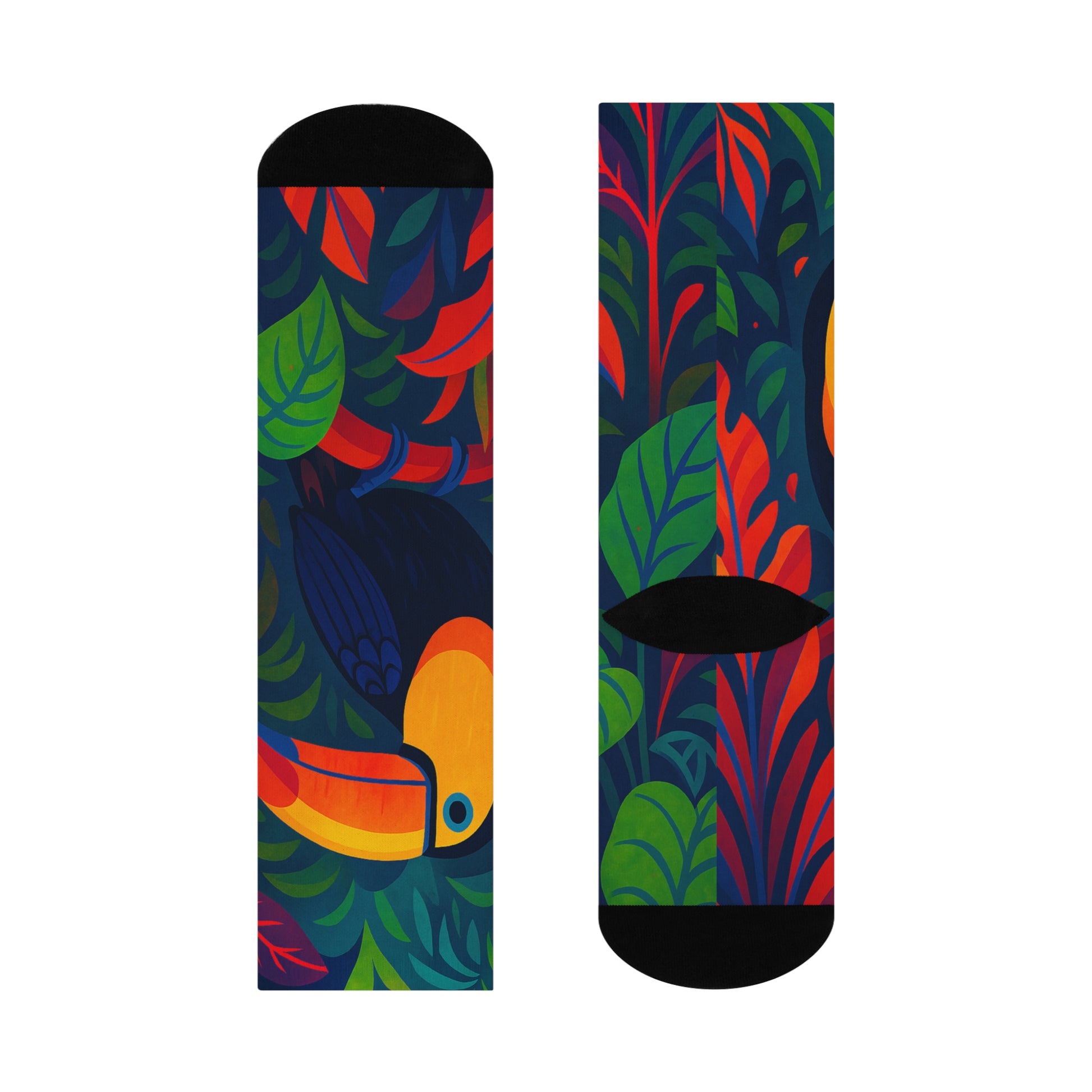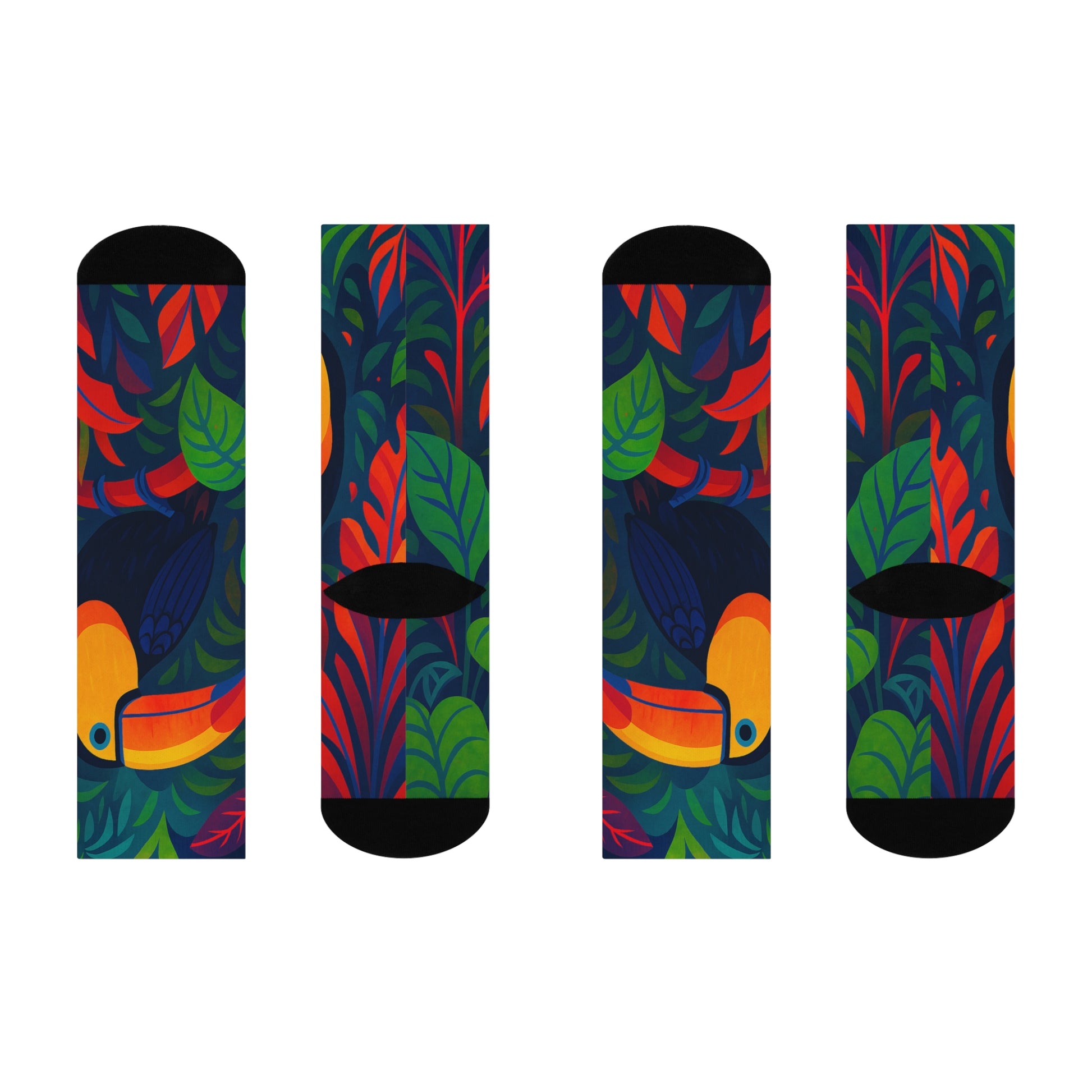 Tropical Toucan Crew Socks | Funky Gift for Bird Lovers, Cozy Everyday Wear, Fun Summer Accessories, Unique Fashion for Holidays