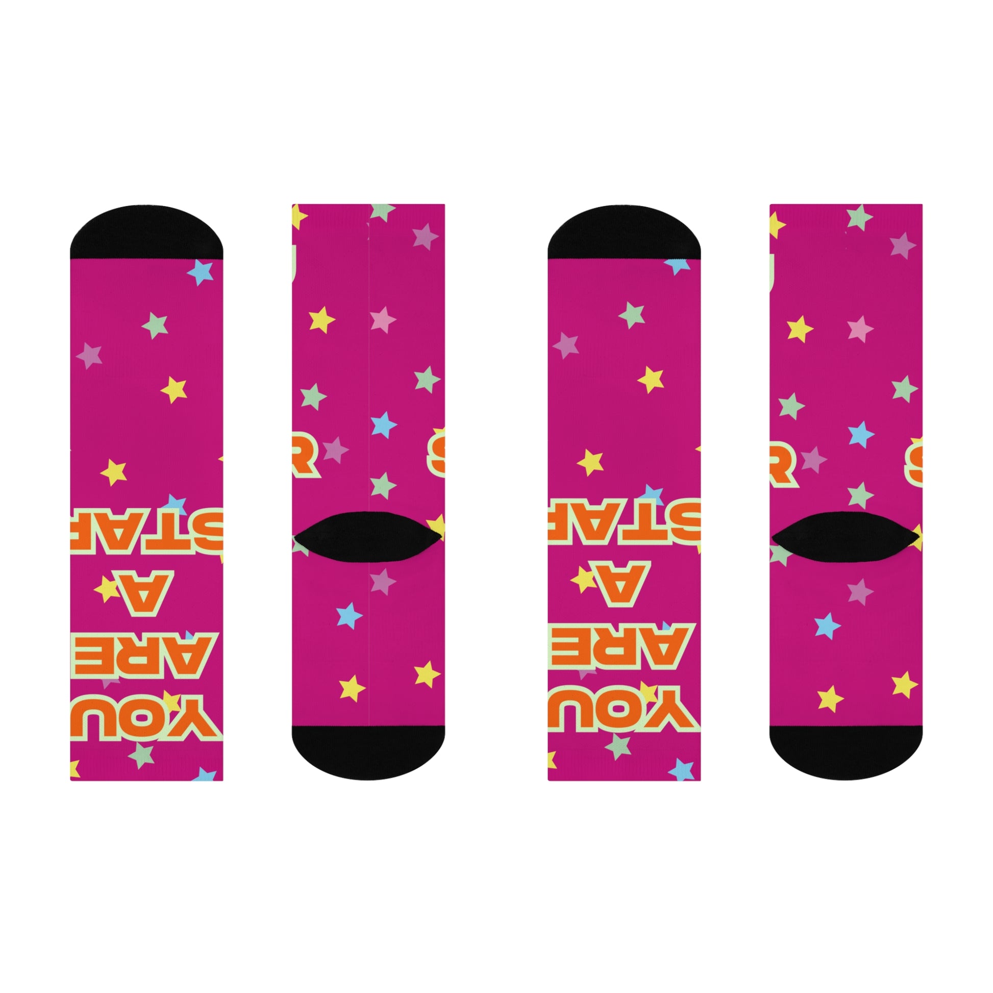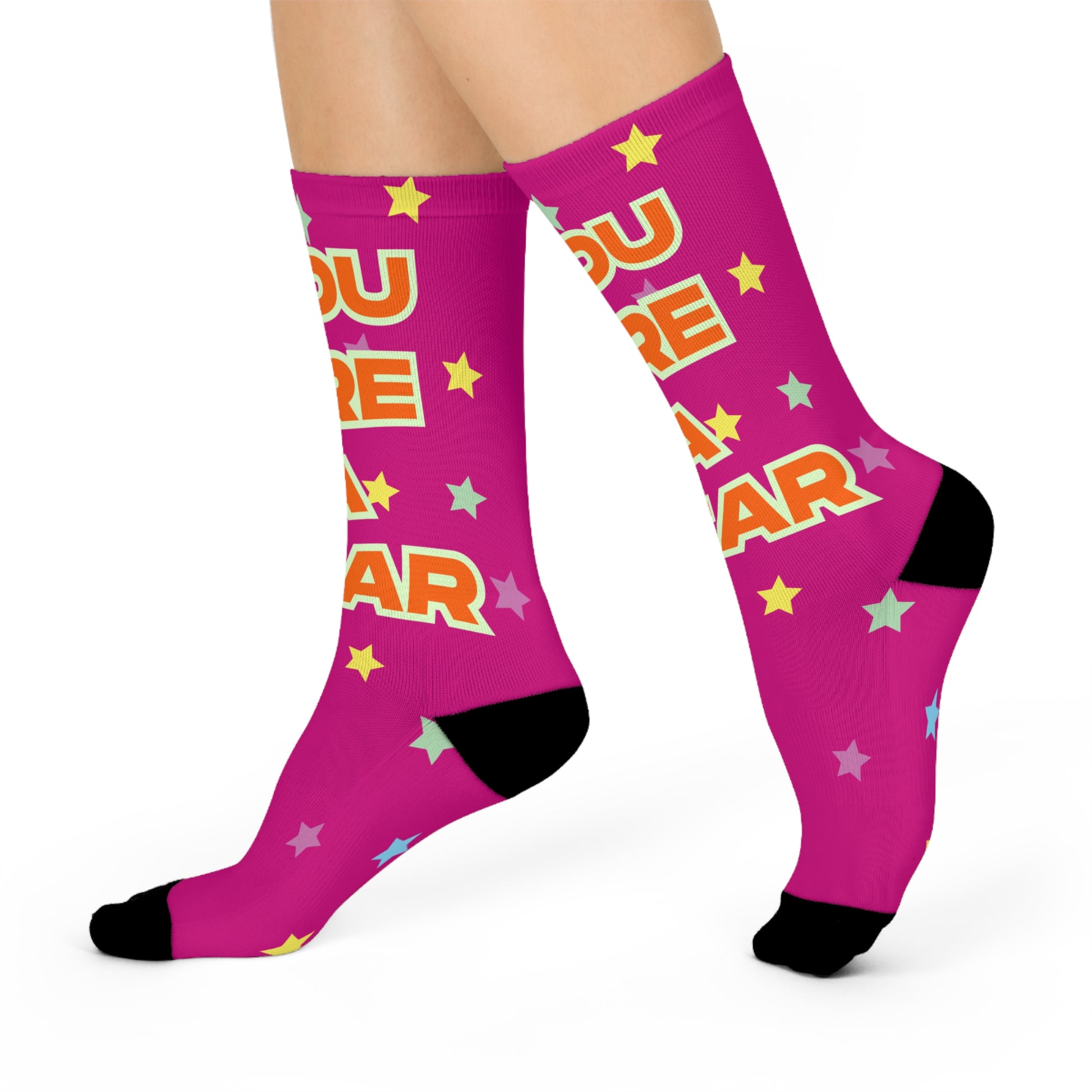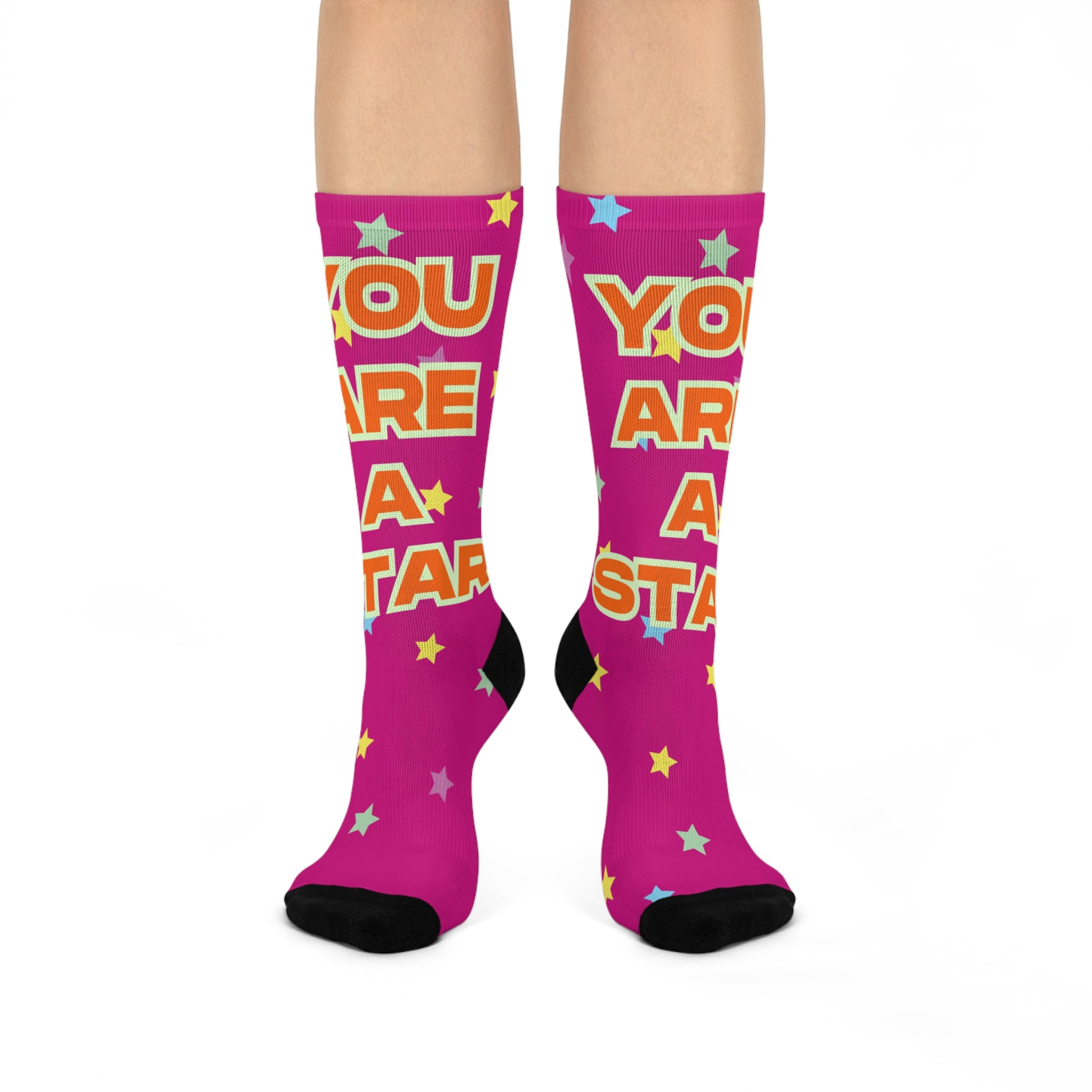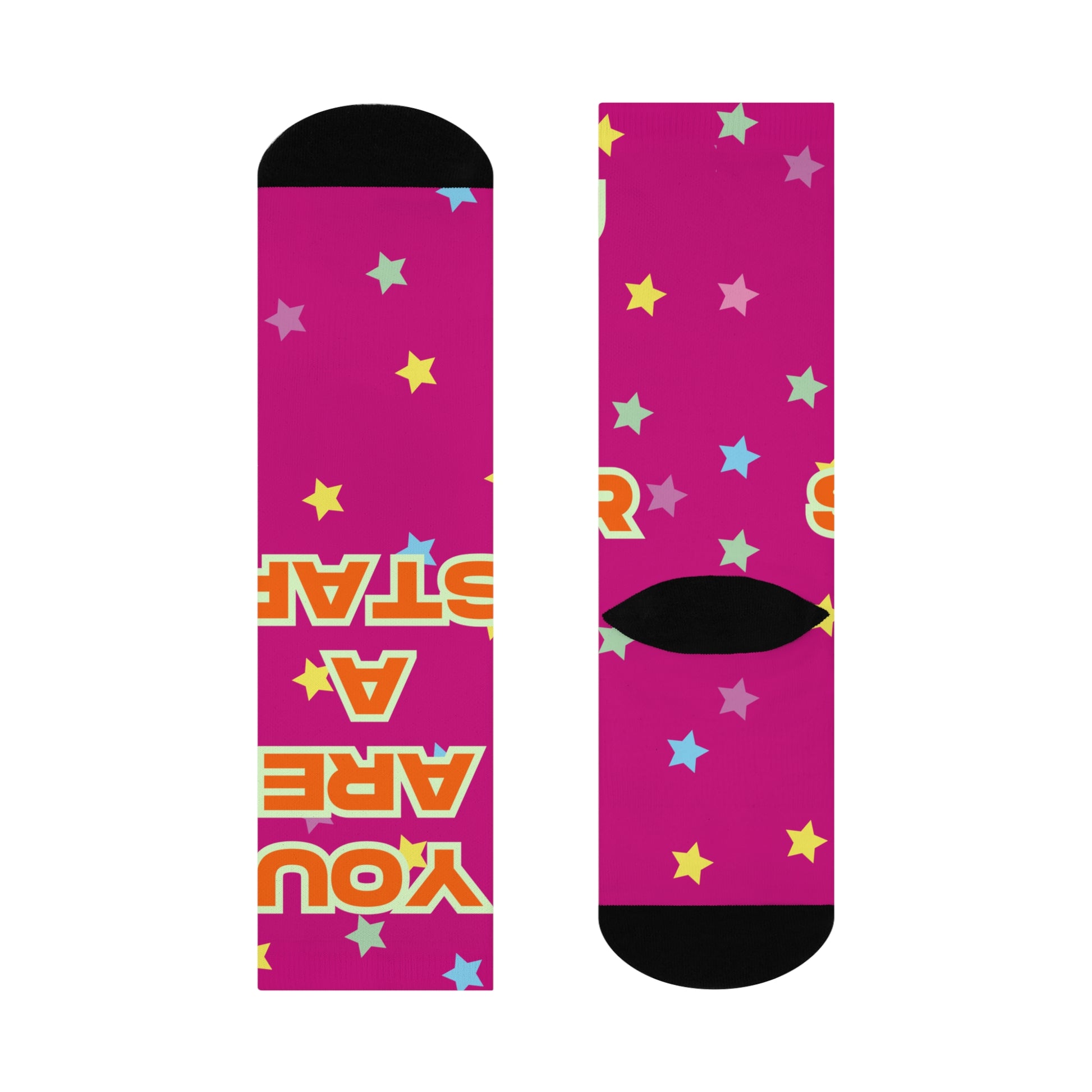 Vibrant Motivational Crew Socks | You Are A Star | Gifts for Encouragement, Friendship, Birthdays, Cheer Up, Positive Vibes