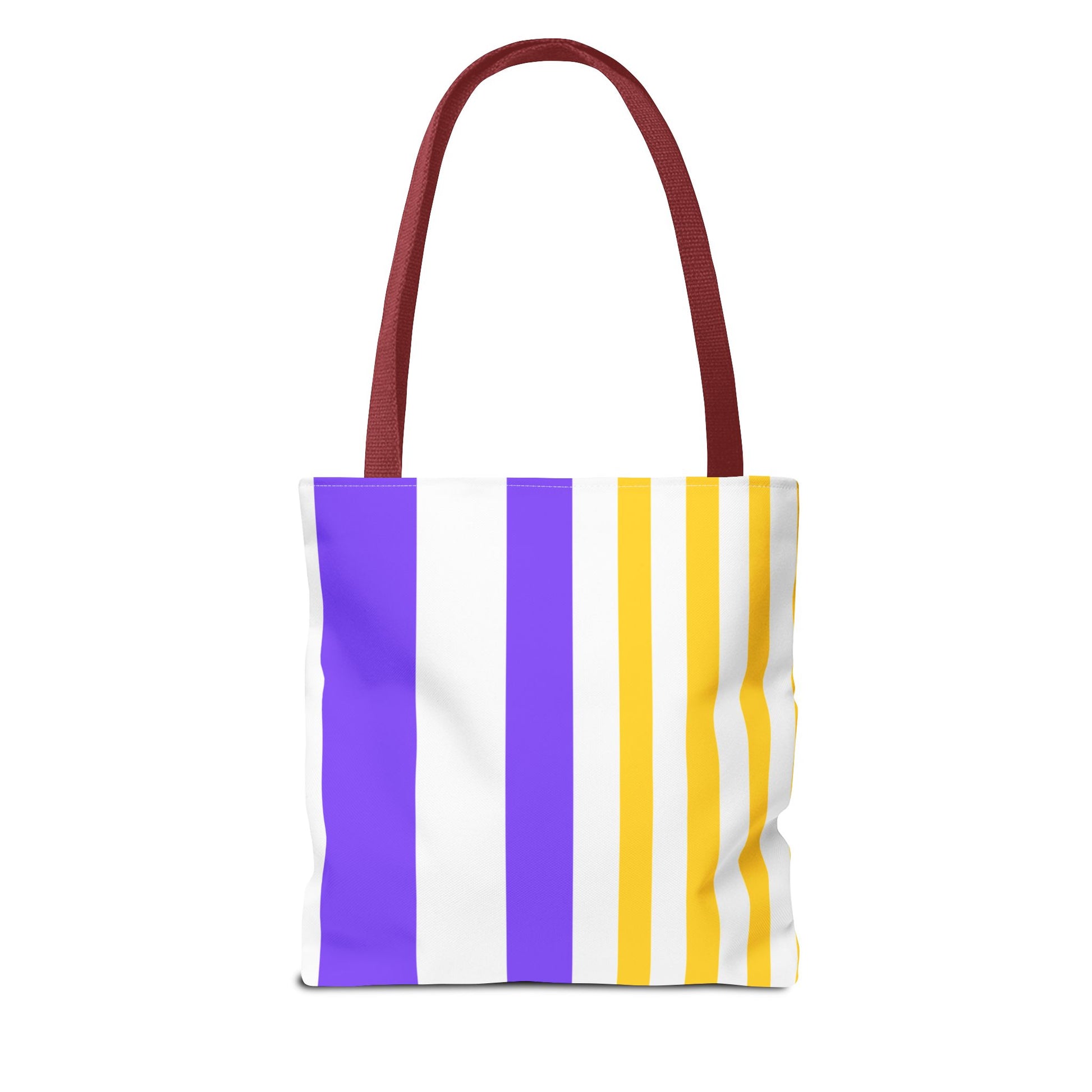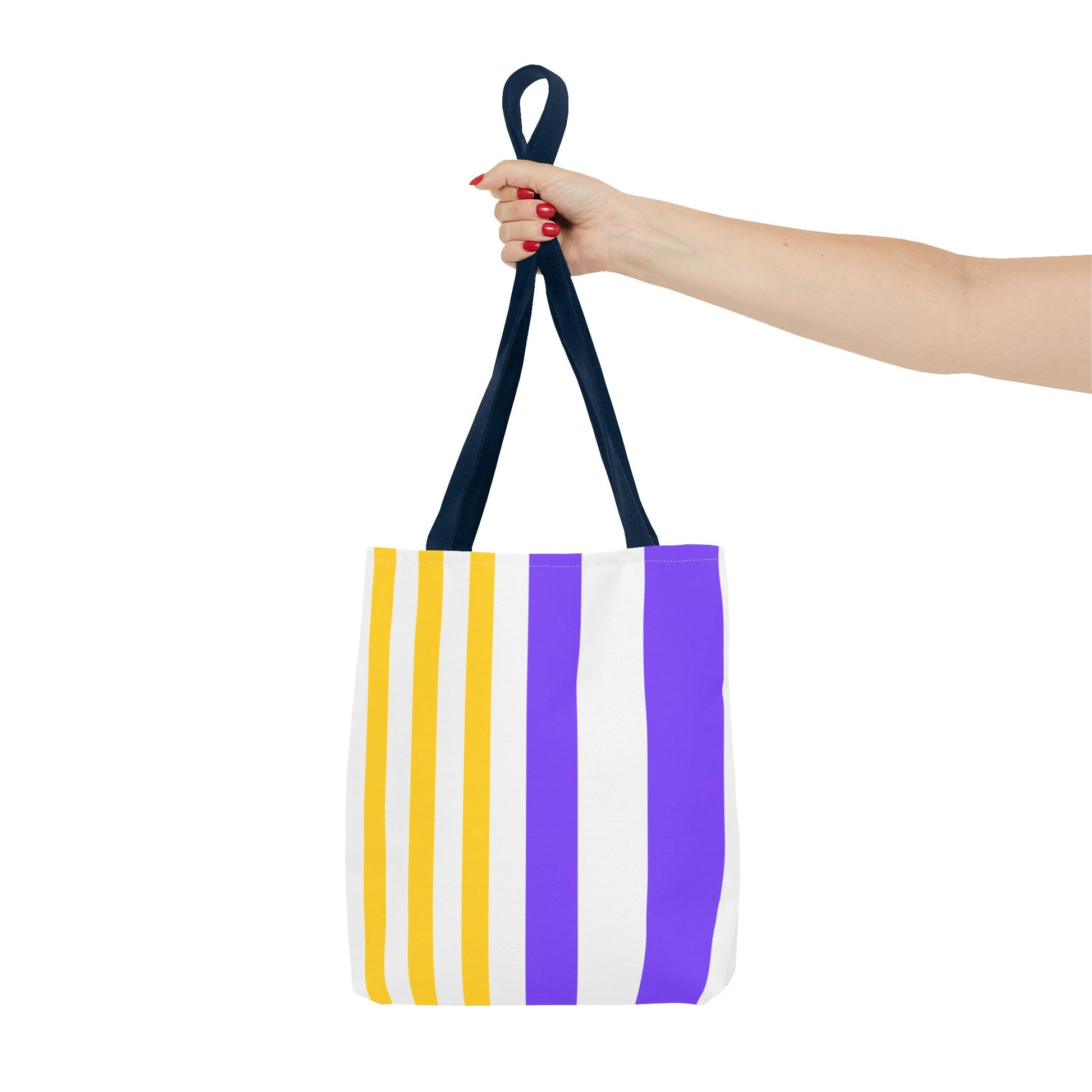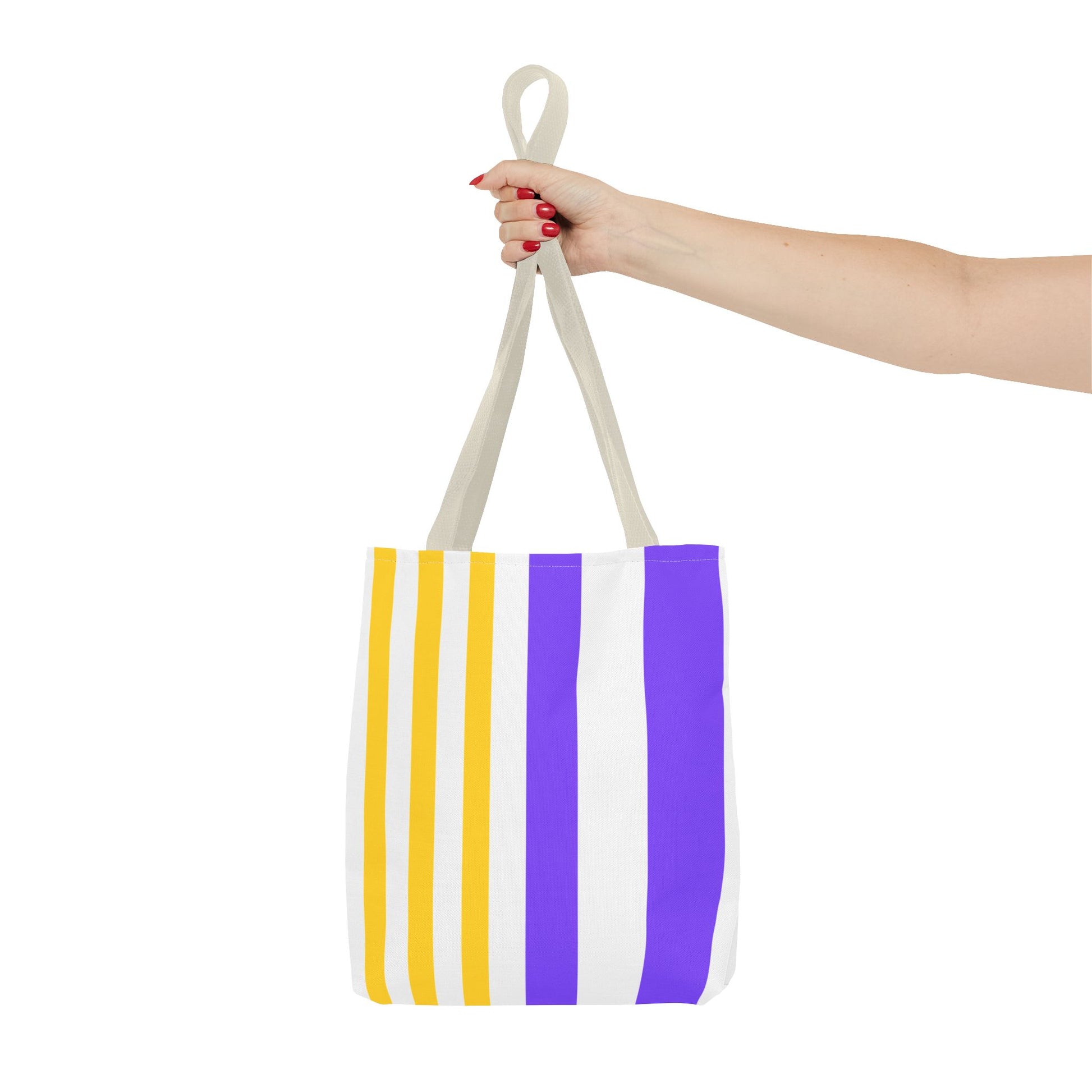 Elevate your everyday adventures with this stylish Tote Bag. Crafted from sturdy 100% polyester, it offers both durability and functionality. The vibrant striped design adds a pop of color to your outfit, making it an ideal accessory for both casual outings and shopping trips. Perfect for the fashion-forward individual who values practicality, this tote is great for students, professionals, or anyone on the go! Celebrate your unique style during holidays, beach days, or simply as a daily companion while running errands. Its spacious interior and reinforced handles ensure you can carry all your essentials effortlessly.