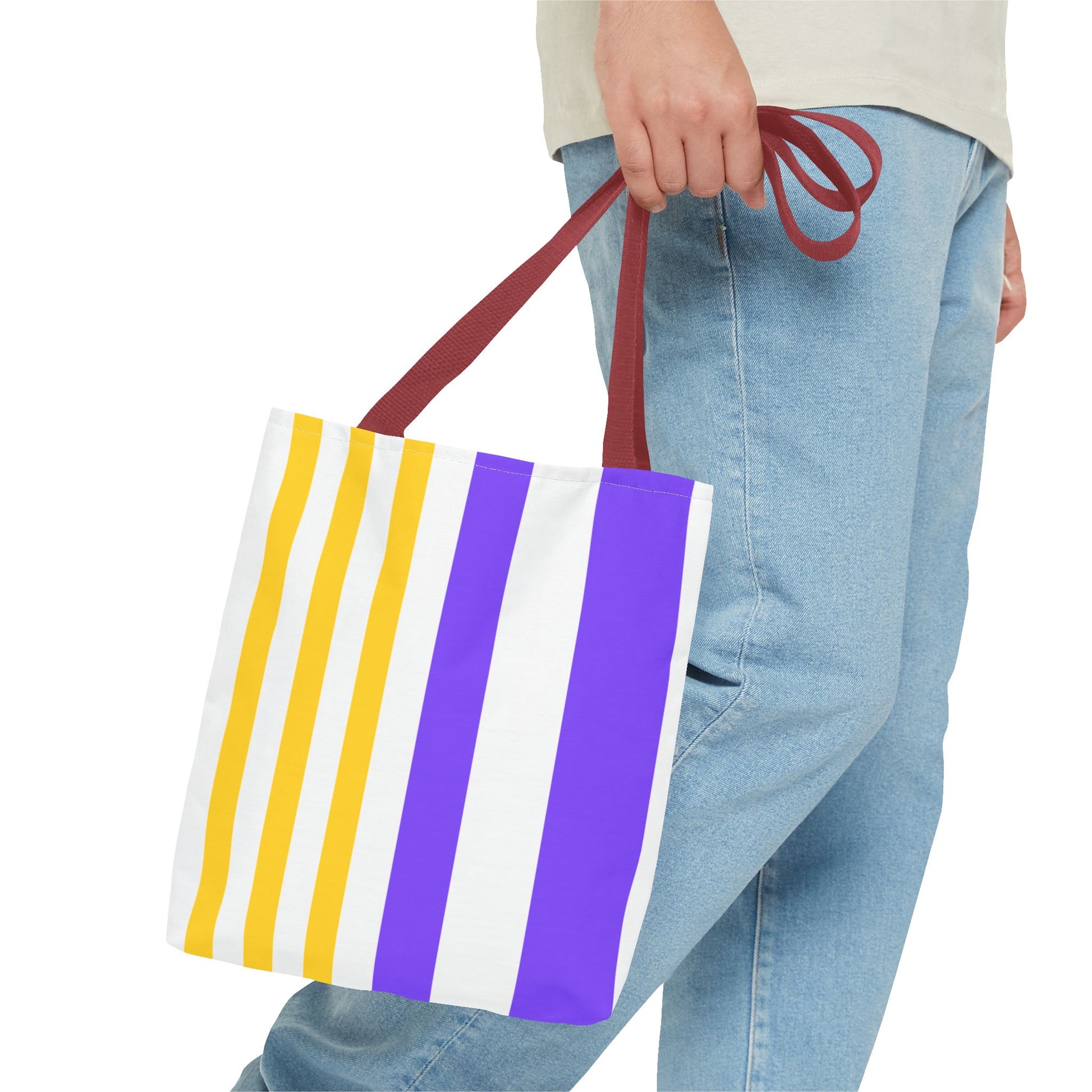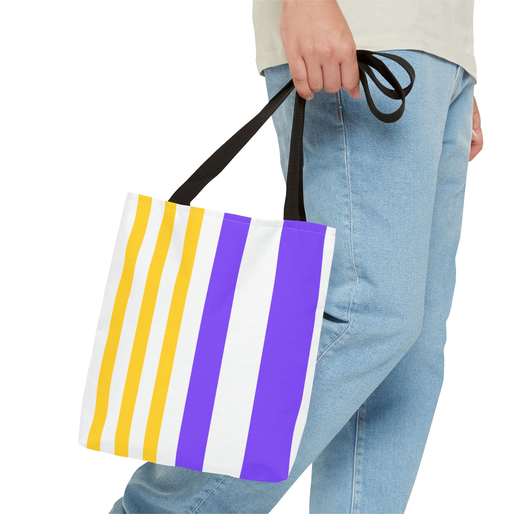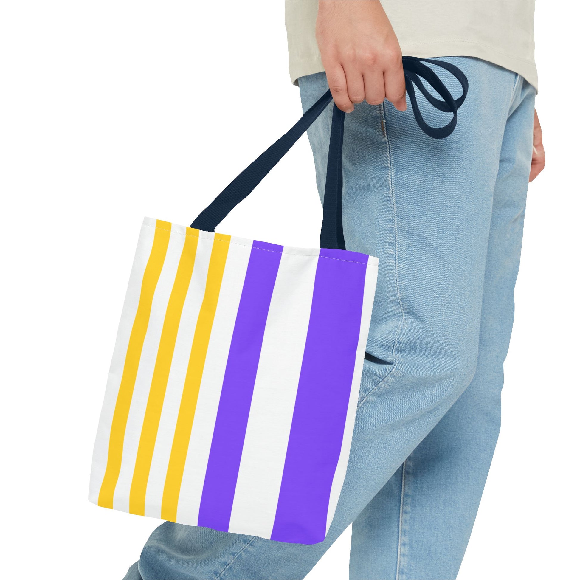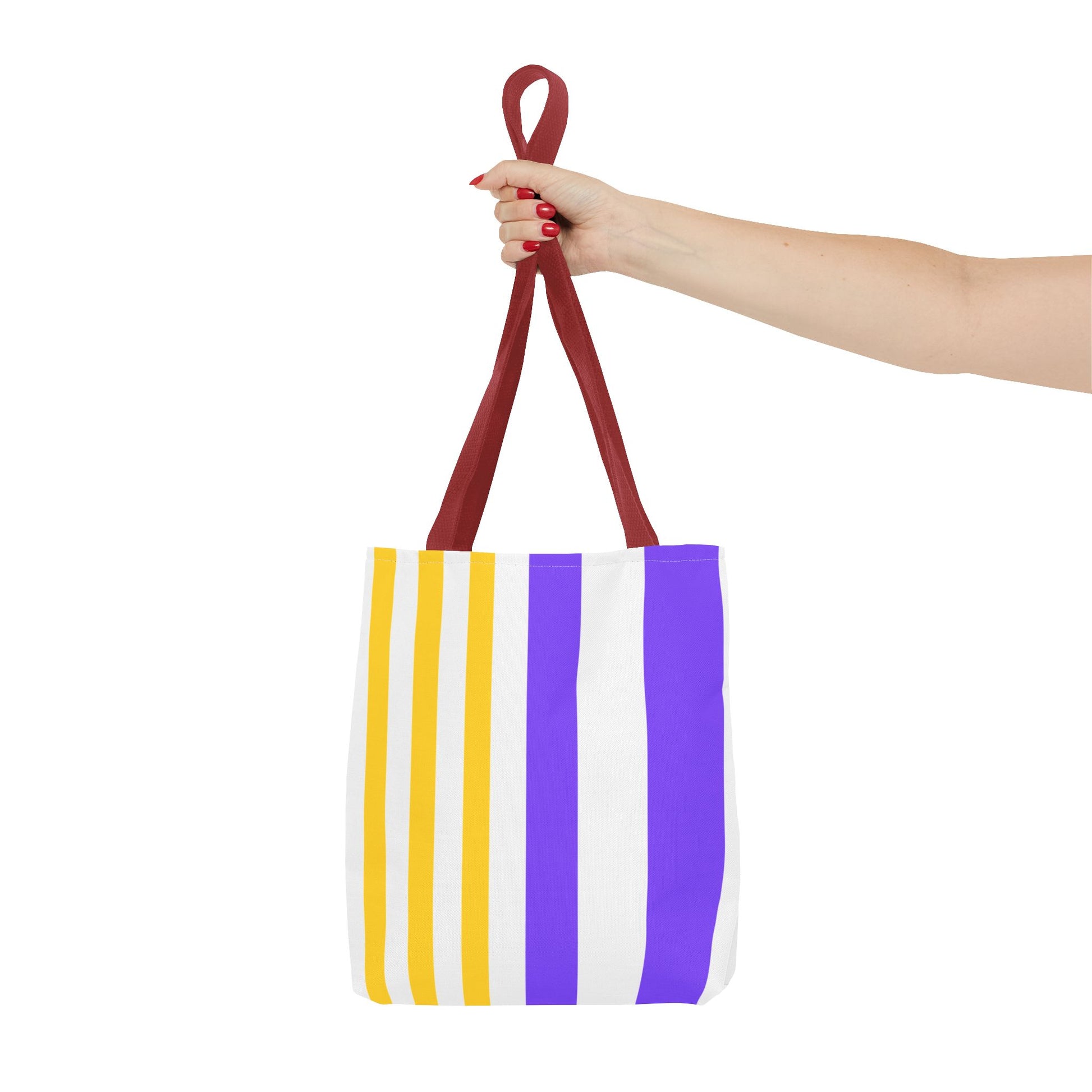 Elevate your everyday adventures with this stylish Tote Bag. Crafted from sturdy 100% polyester, it offers both durability and functionality. The vibrant striped design adds a pop of color to your outfit, making it an ideal accessory for both casual outings and shopping trips. Perfect for the fashion-forward individual who values practicality, this tote is great for students, professionals, or anyone on the go! Celebrate your unique style during holidays, beach days, or simply as a daily companion while running errands. Its spacious interior and reinforced handles ensure you can carry all your essentials effortlessly.