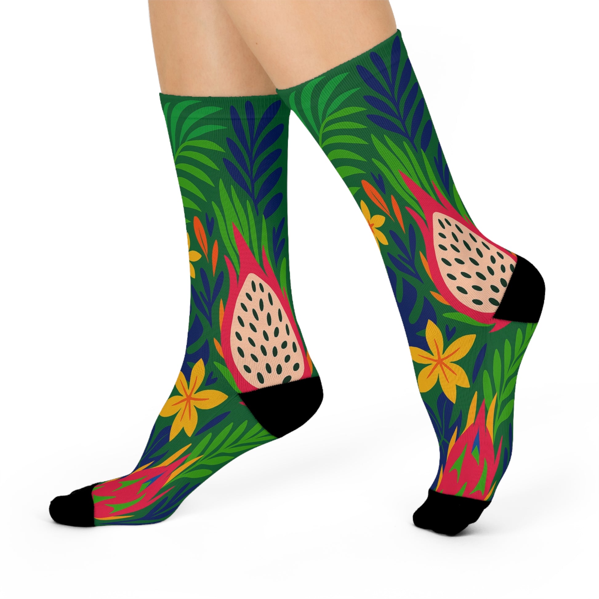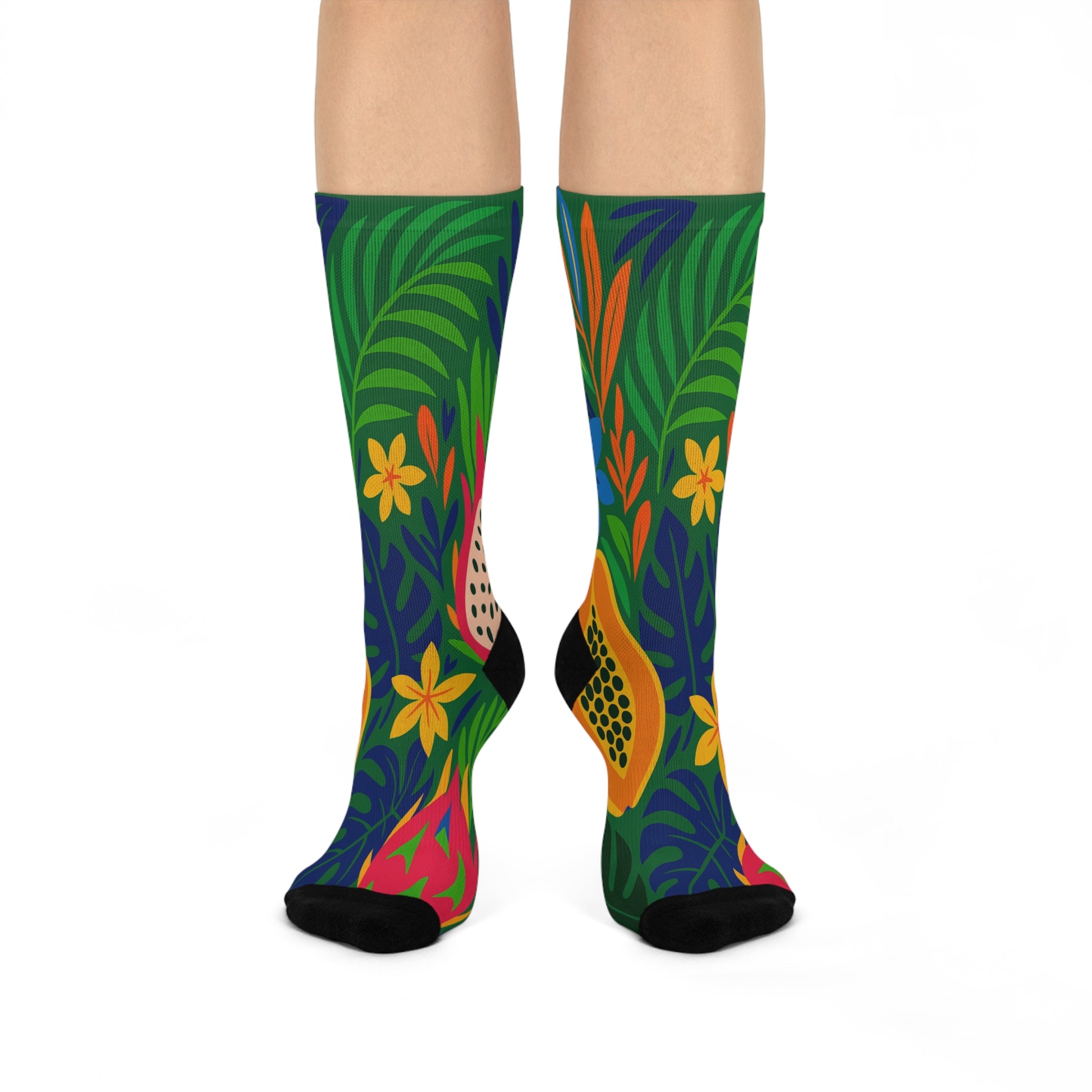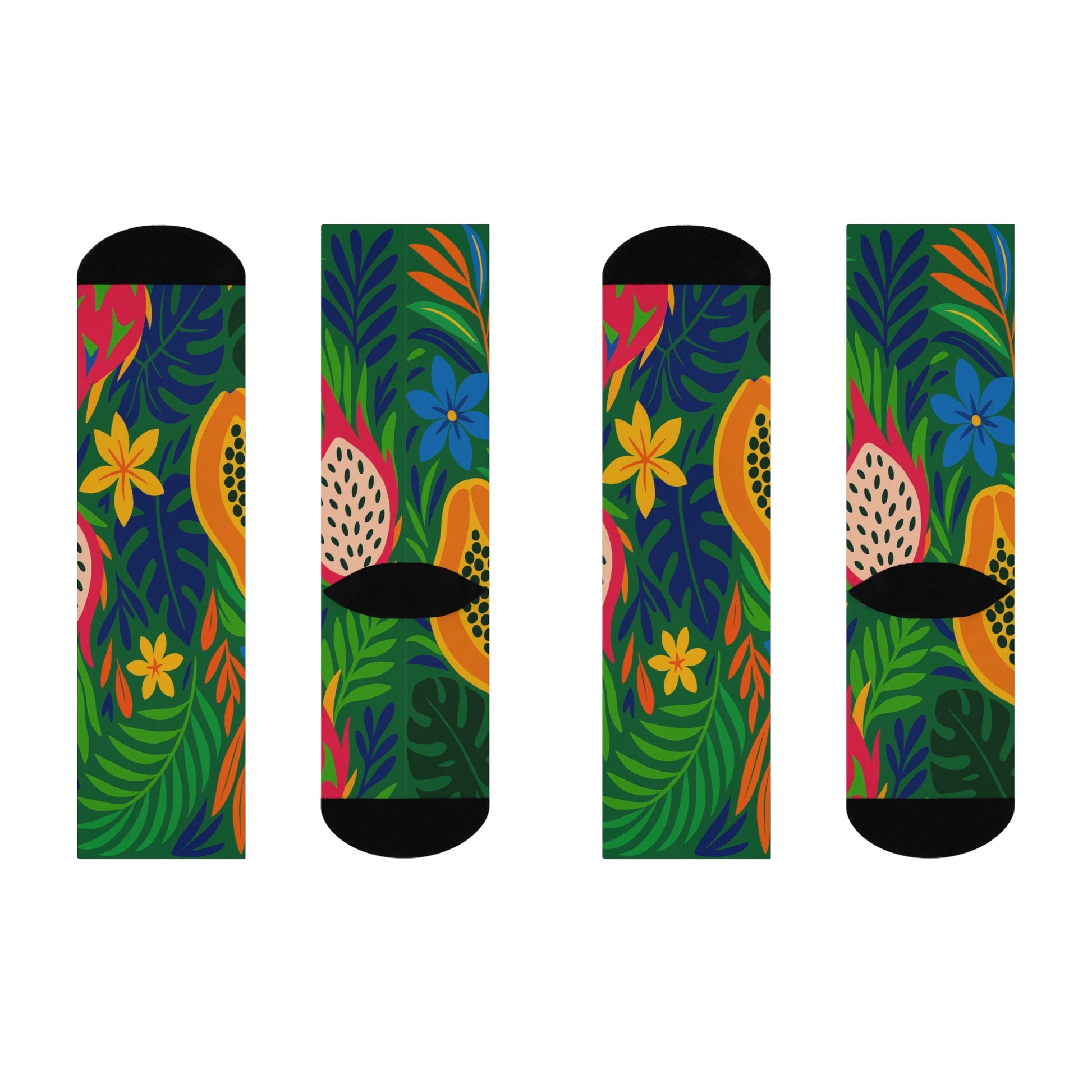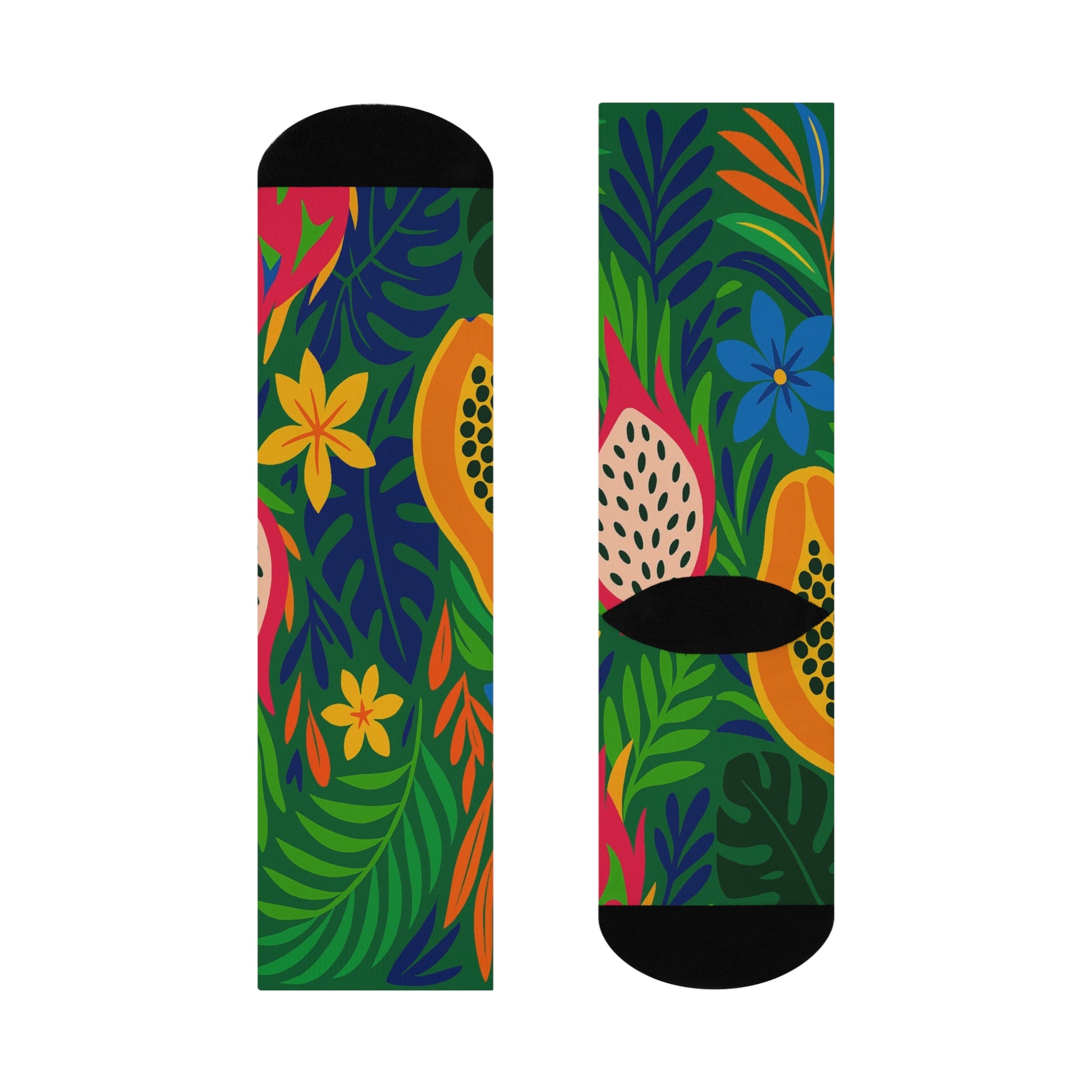 Vibrant Tropical Crew Socks for Comfort and Style, Colorful Cushion Socks, Tropical Paradise Gift, Fun Socks for Summer, Stylish Home footwear